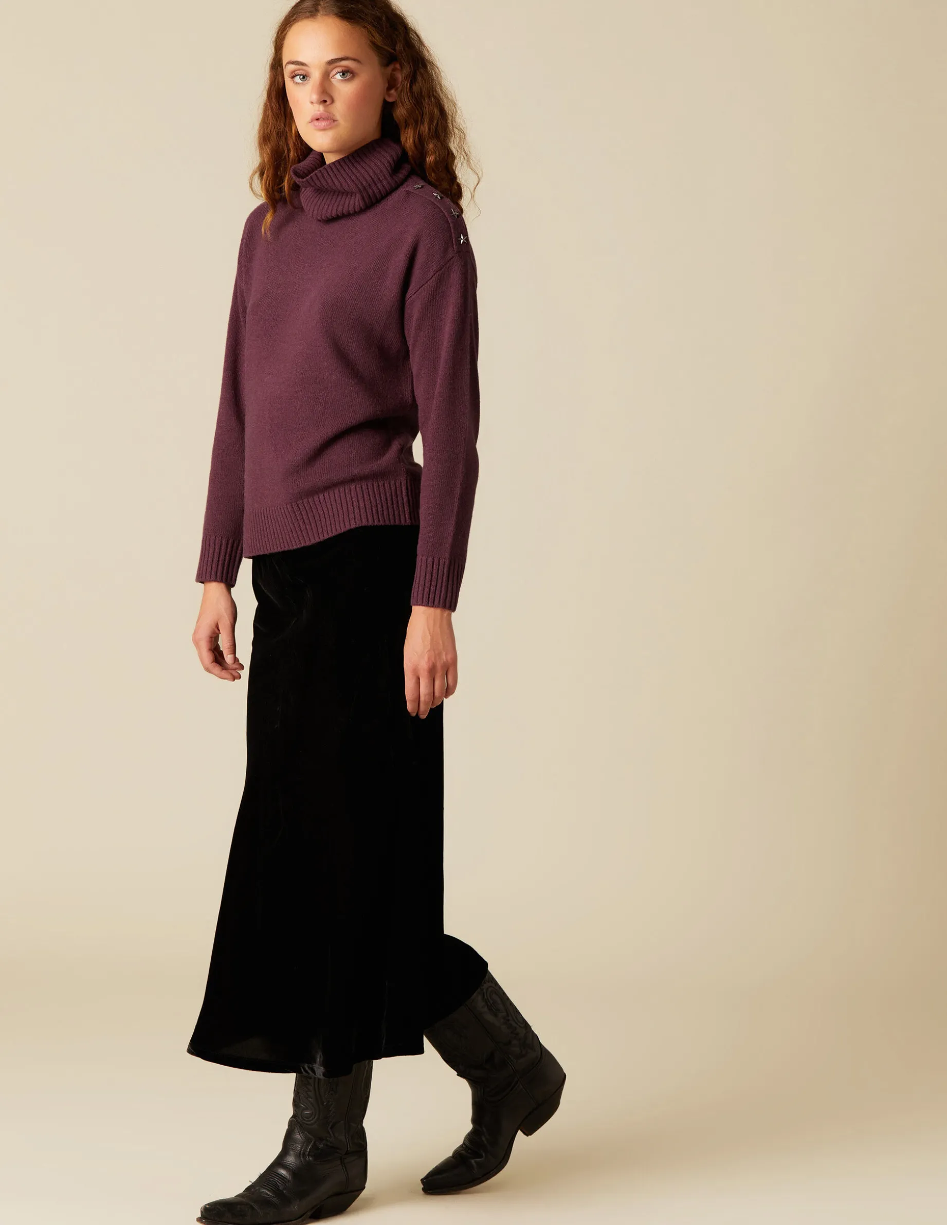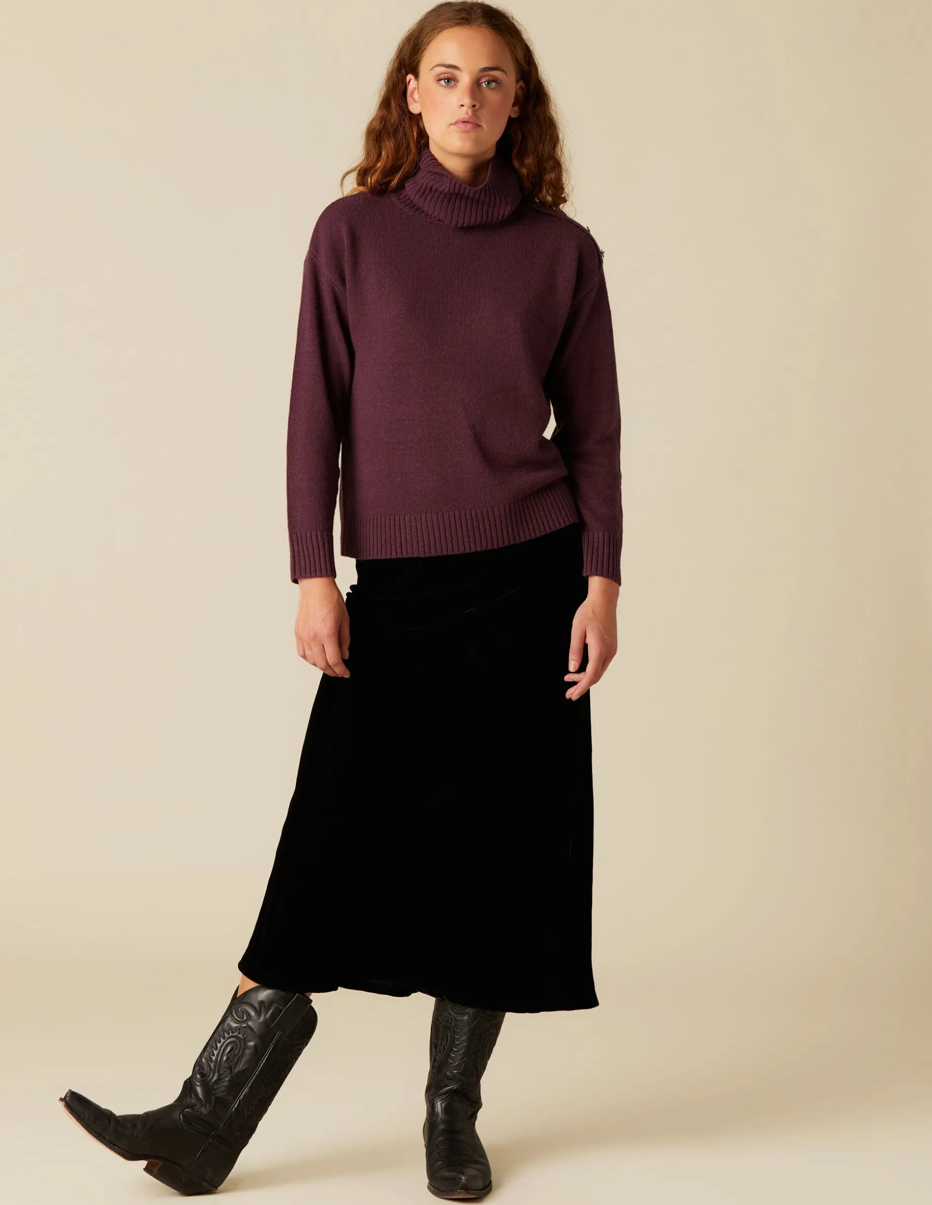 Falda midi de chica, en terciopelo liso. Patrón con goma en la cintura.