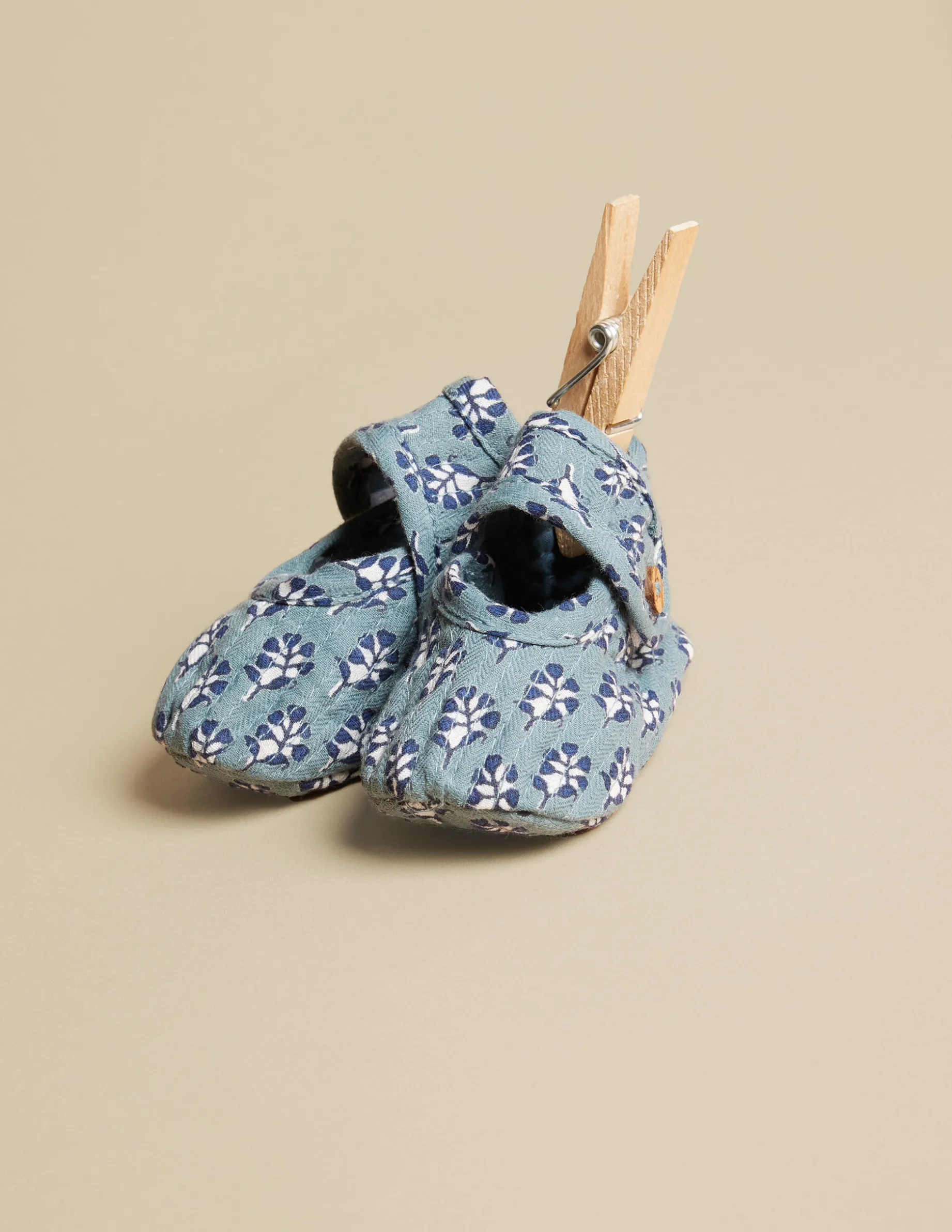 Zapato de bebé de tela, en print de la colección. Cierre con belcro. Solo apto para niños que no anden.