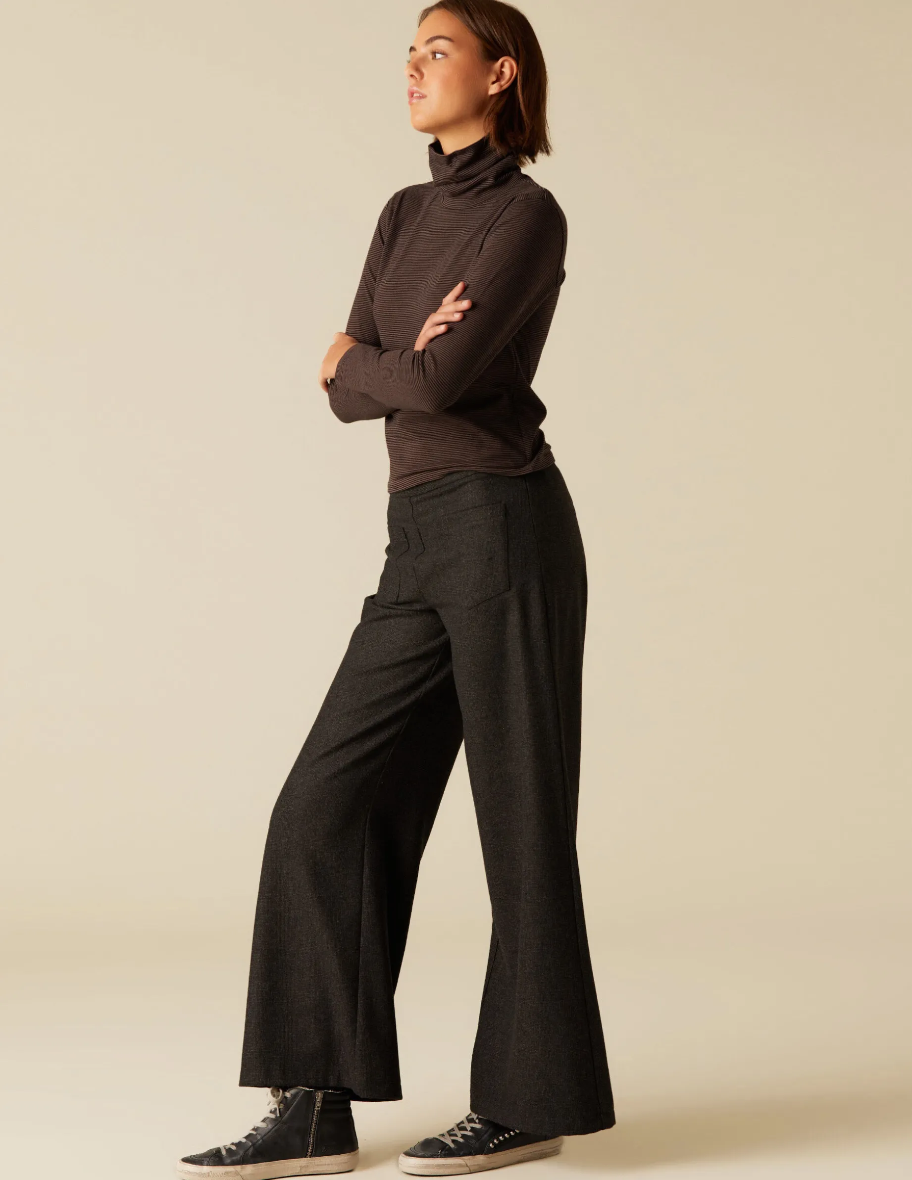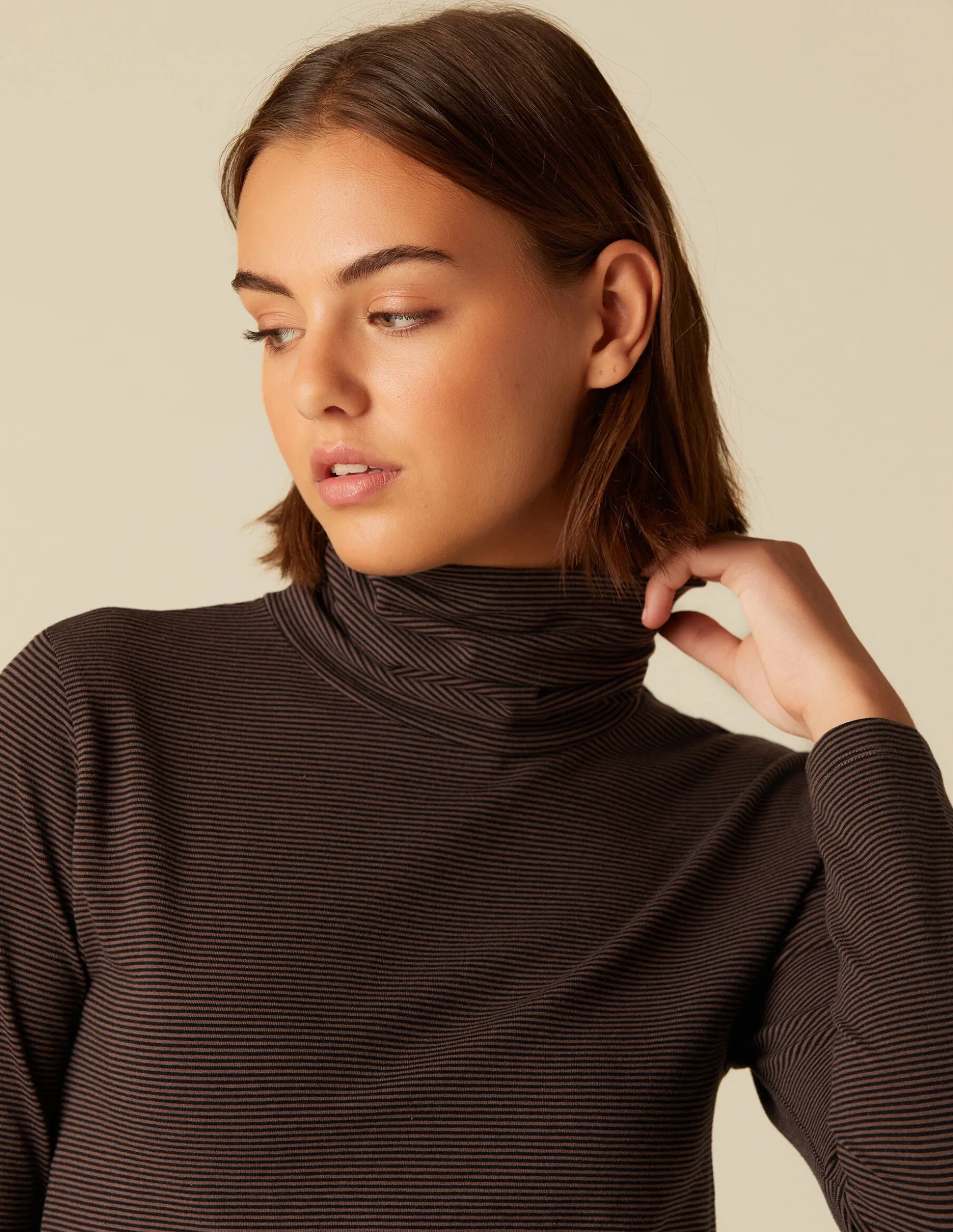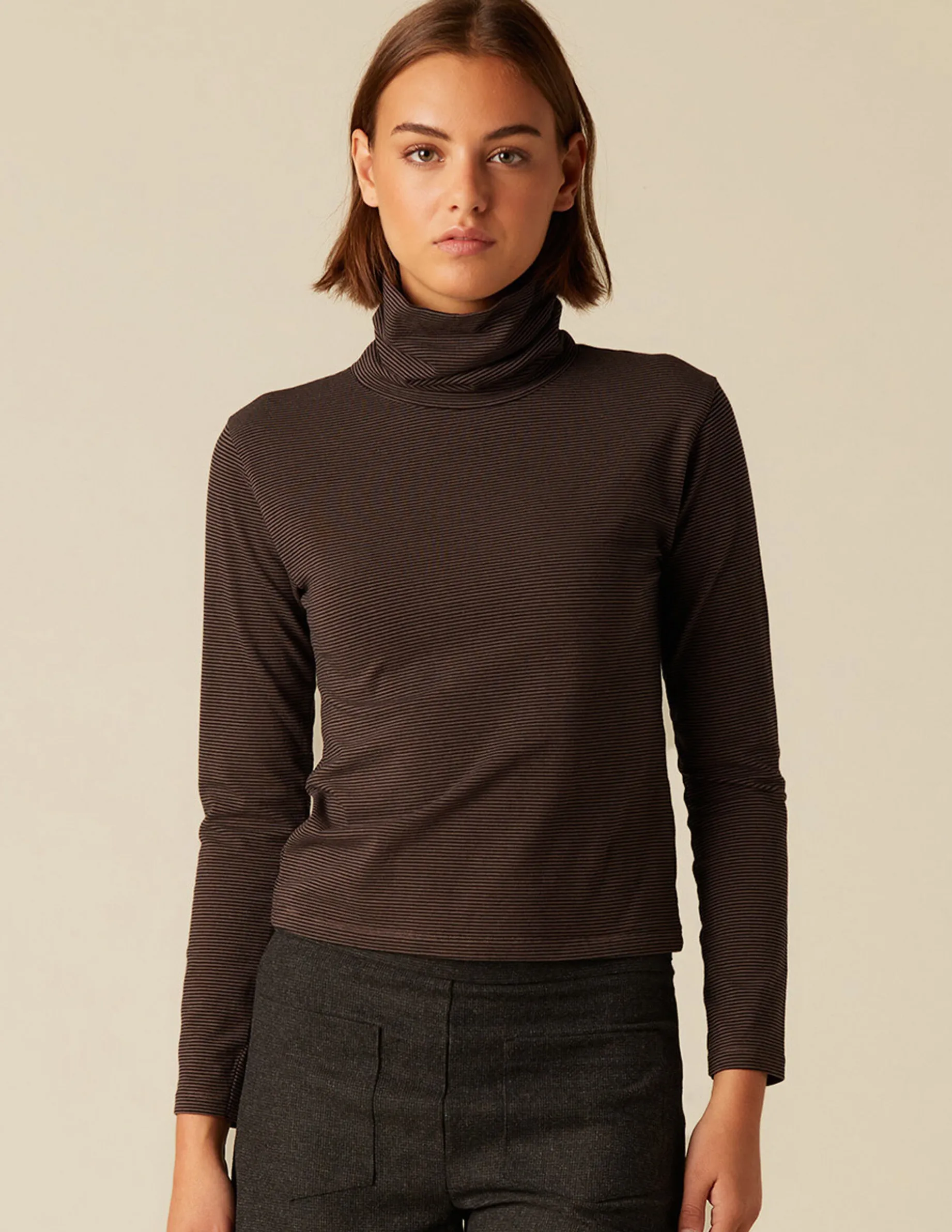 Camiseta benéfica de rayas, de chica. Patrón con cuello vuelto y manga larga.