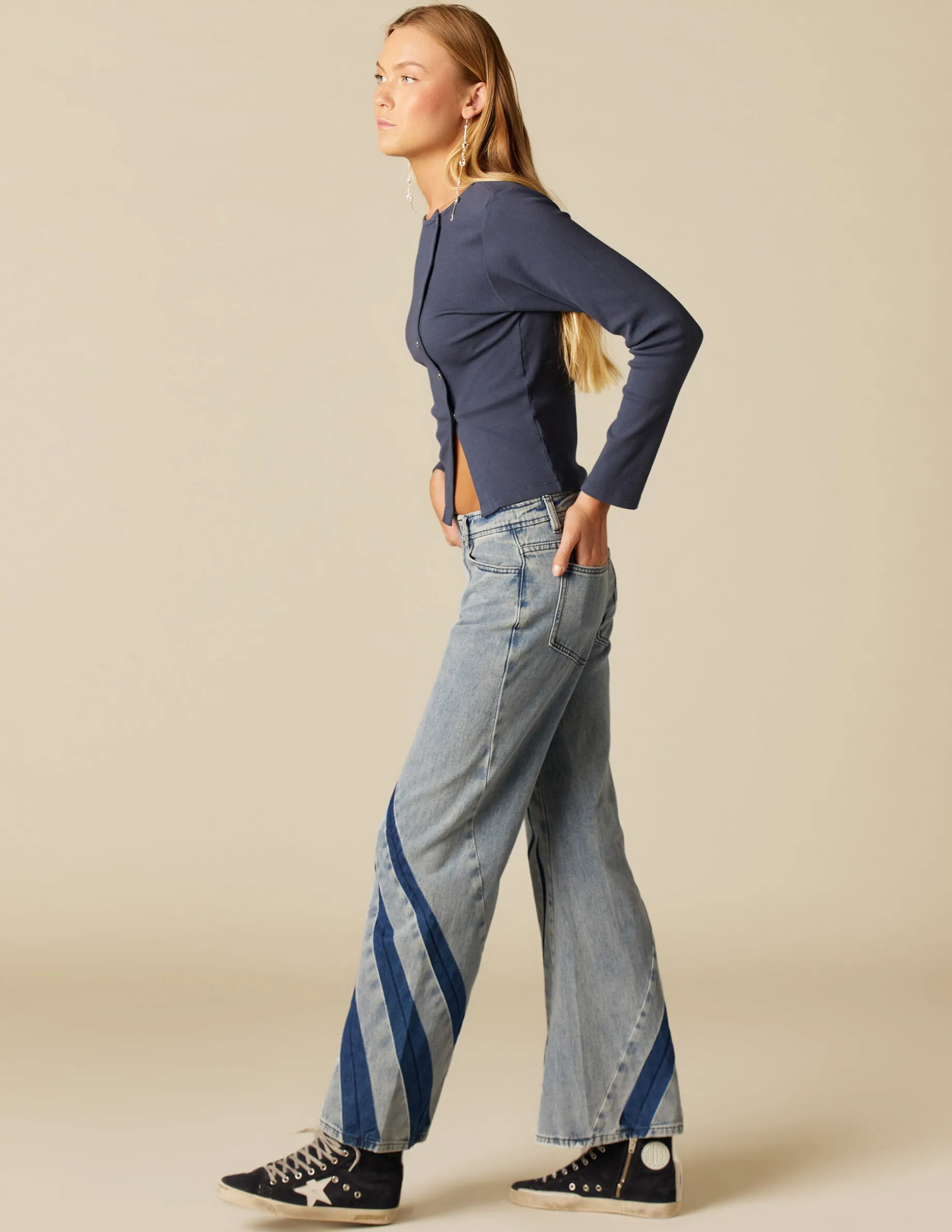 Camiseta de chica, en color de la colección. Patrón con manga larga, escote cerrado y snaps laterales.