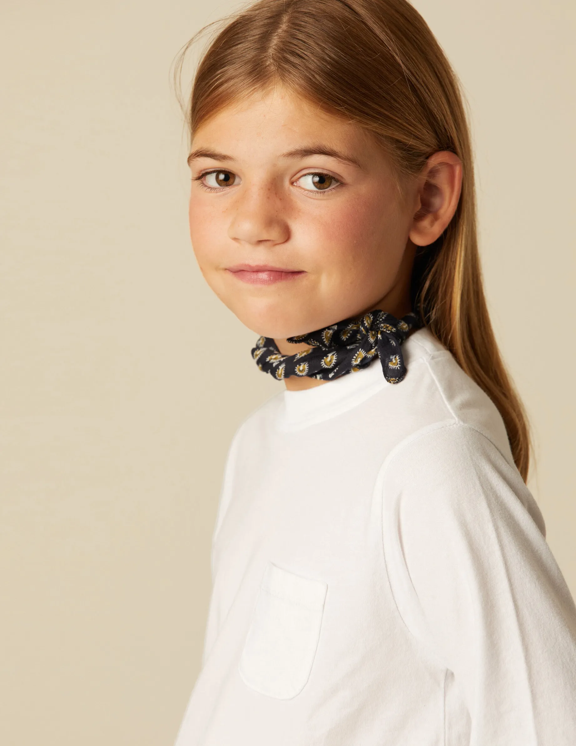 Camiseta básica de chica, patrón con cuello redondo y manga larga. Detalle de logo bordado en el bajo.