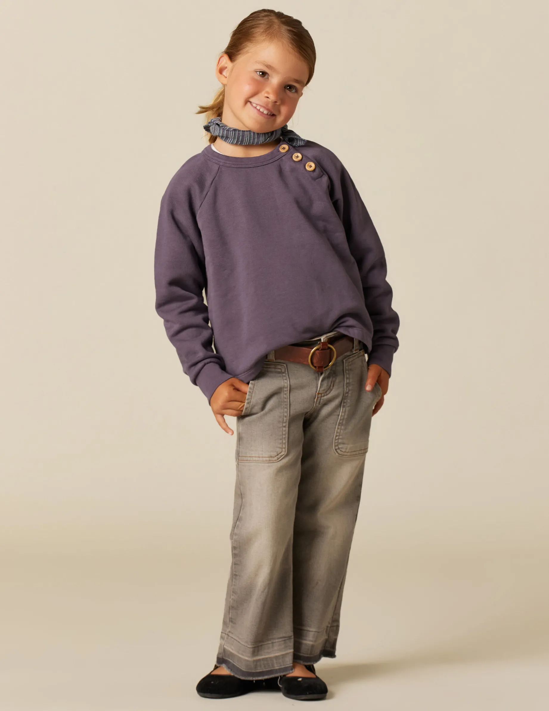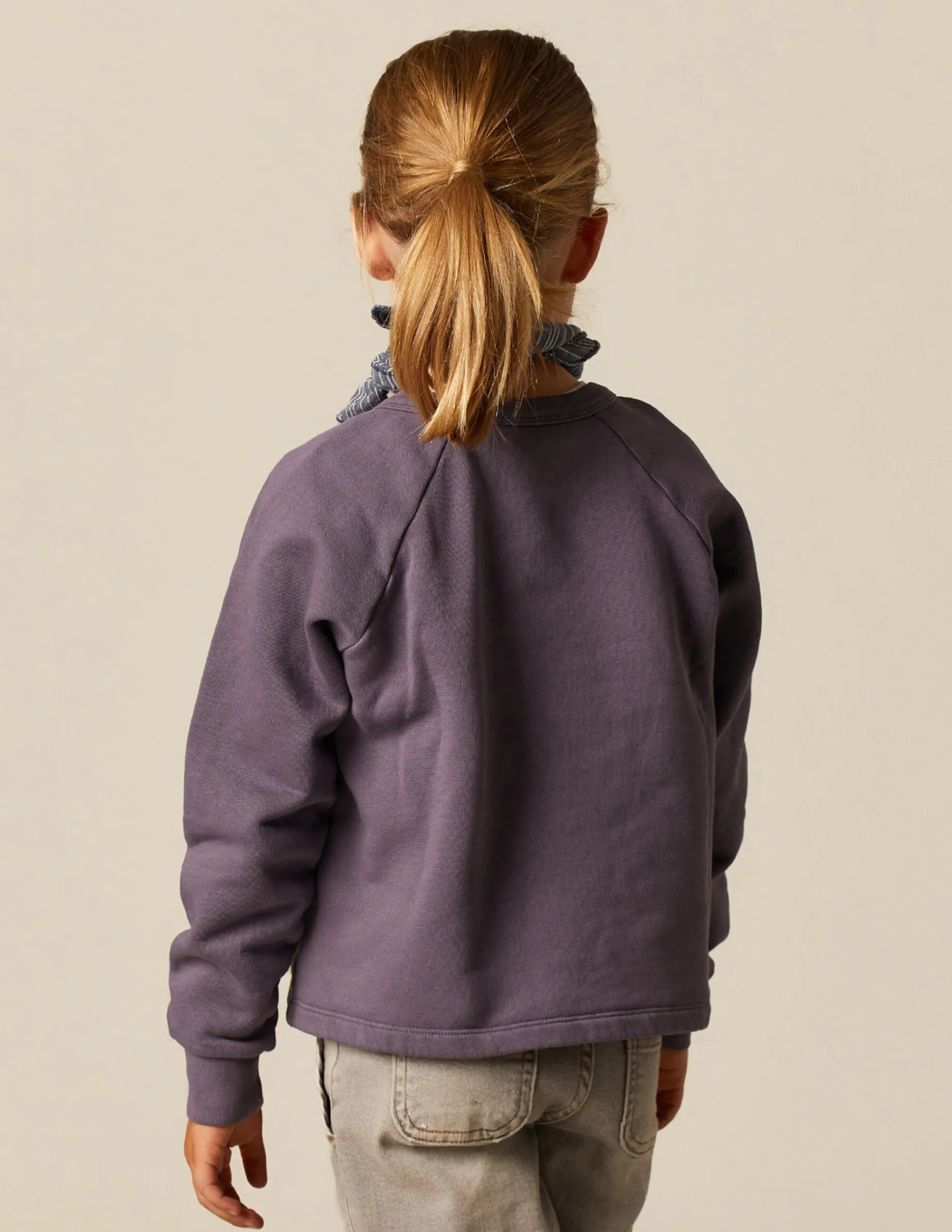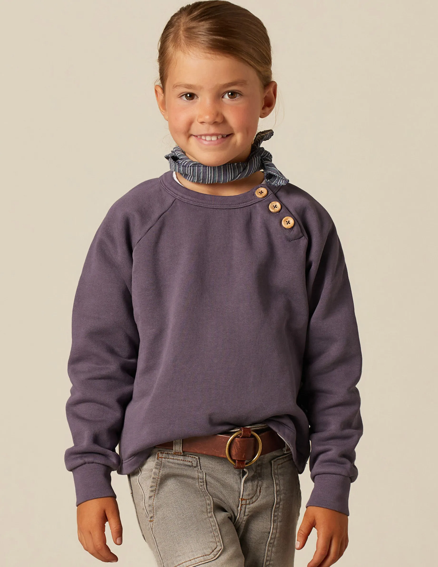 Sudadera de niña, detalle de botones en el lateral del cuello.