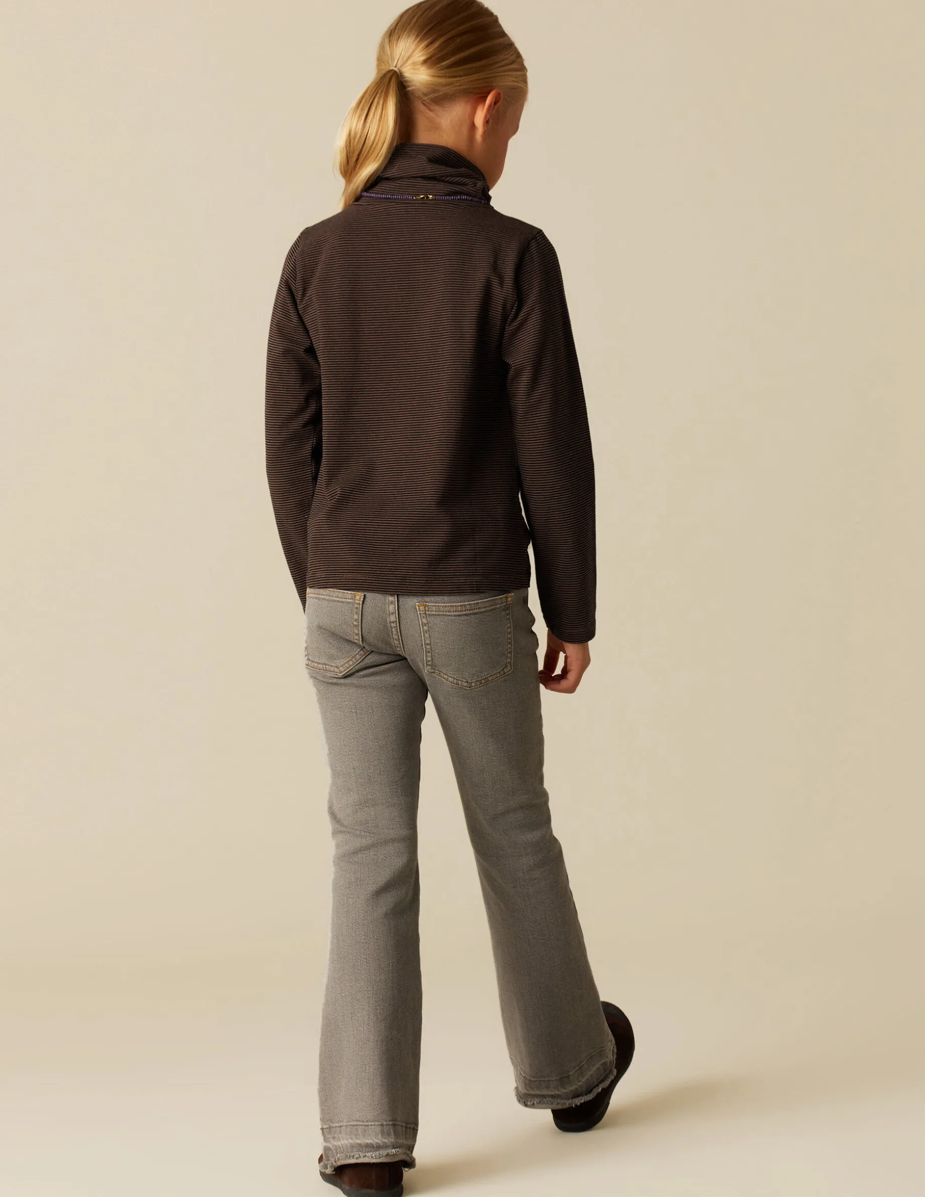 Camiseta benéfica de rayas, de niña. Patrón con cuello vuelto y manga larga.
