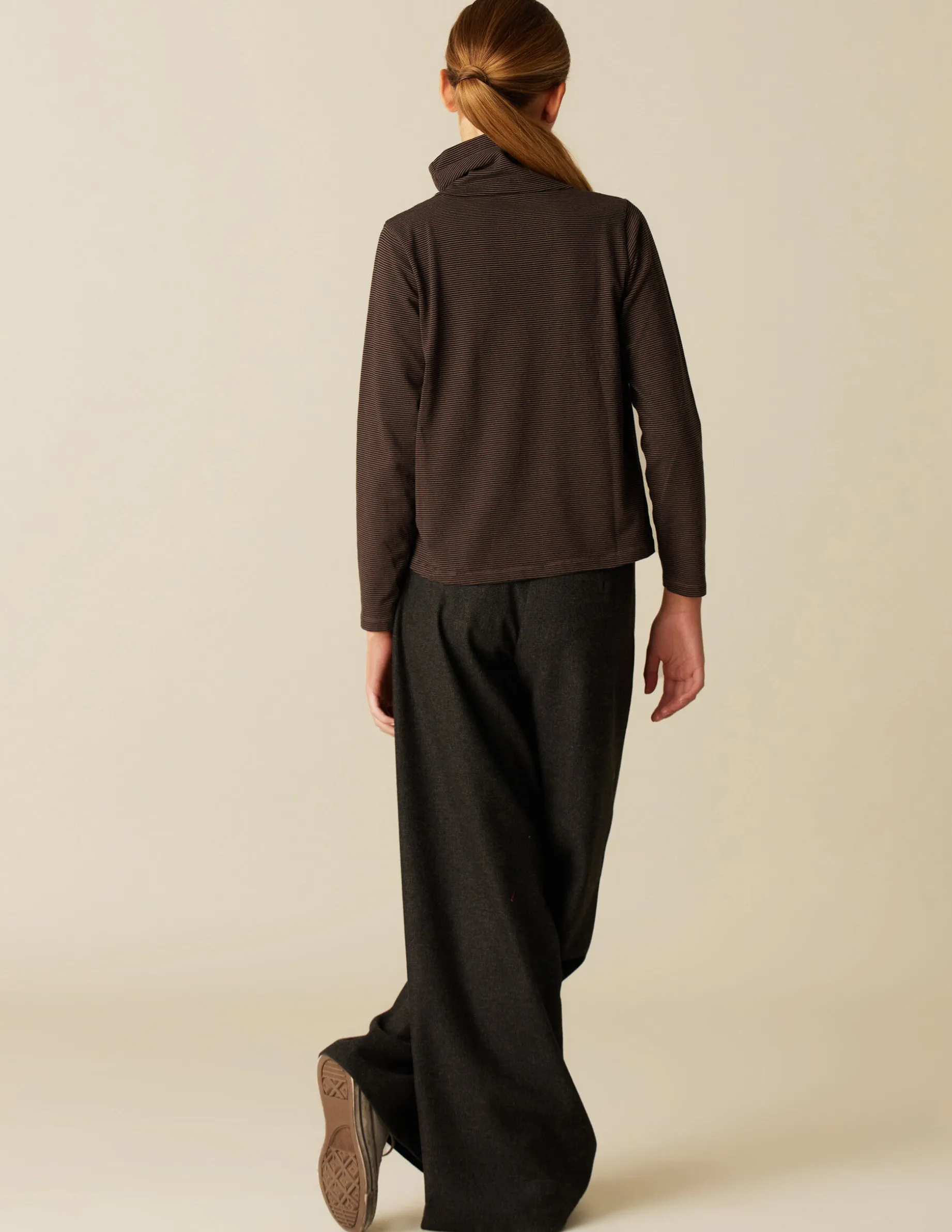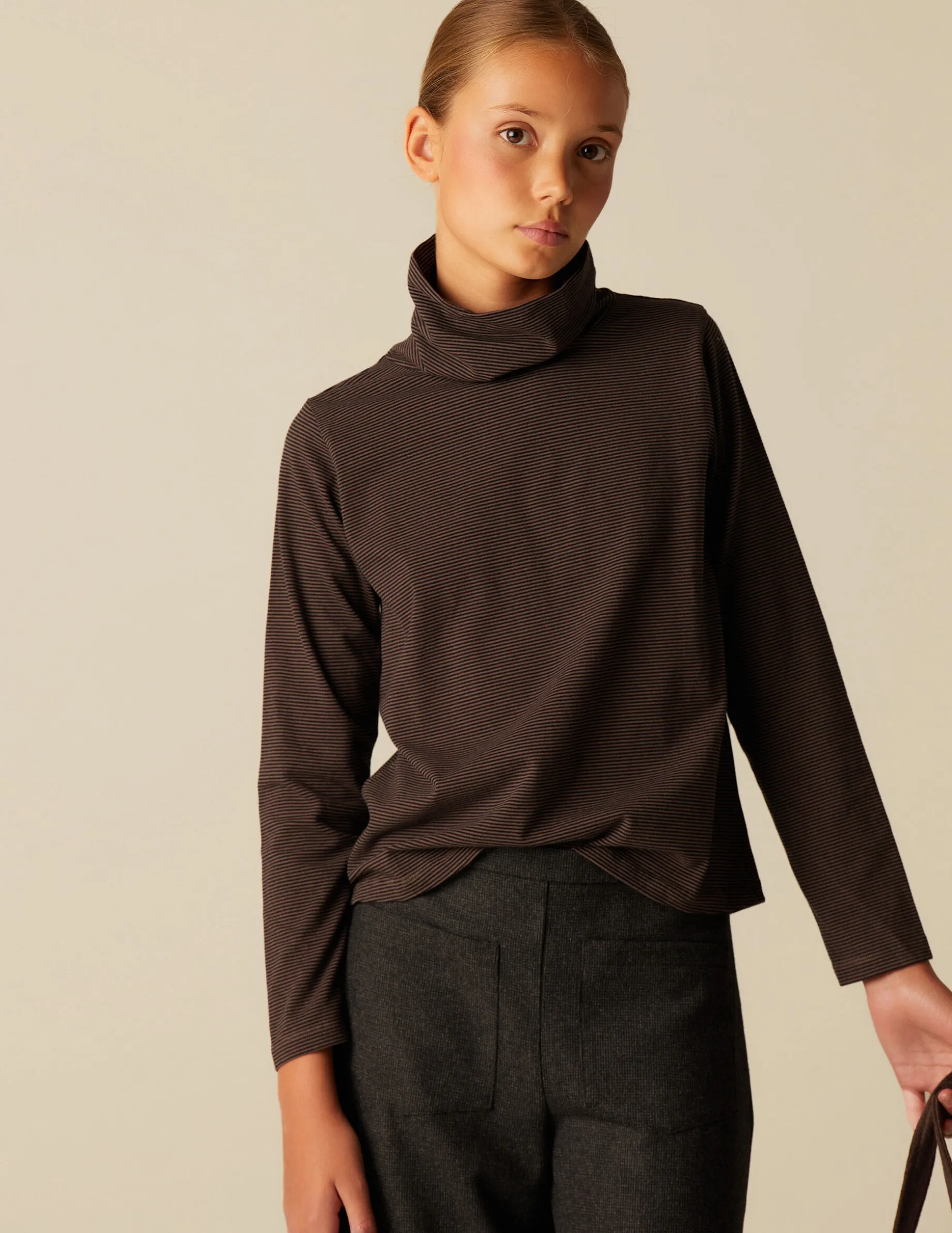 Camiseta benéfica de rayas, de teen. Patrón con cuello vuelto y manga larga.
