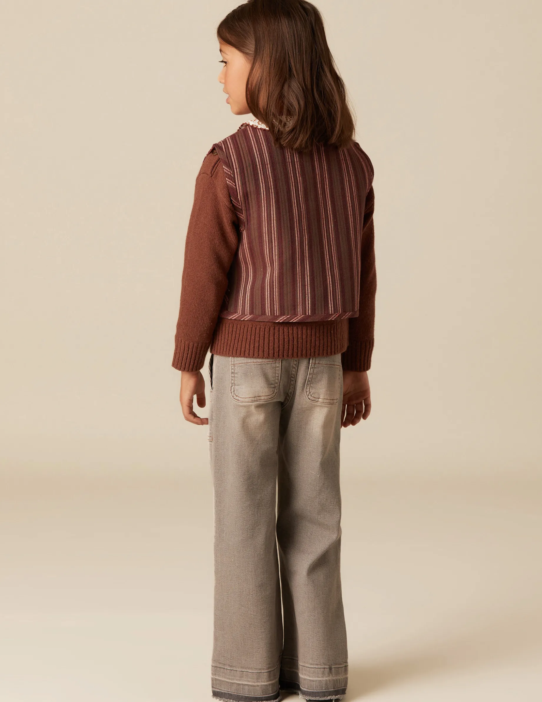 Chaleco de niña, en tejido de algodón de rayas.