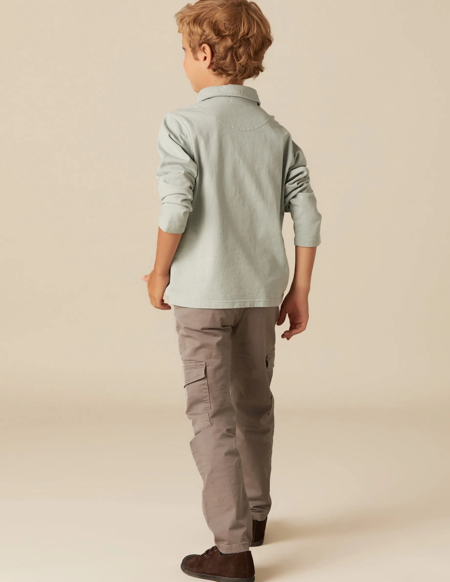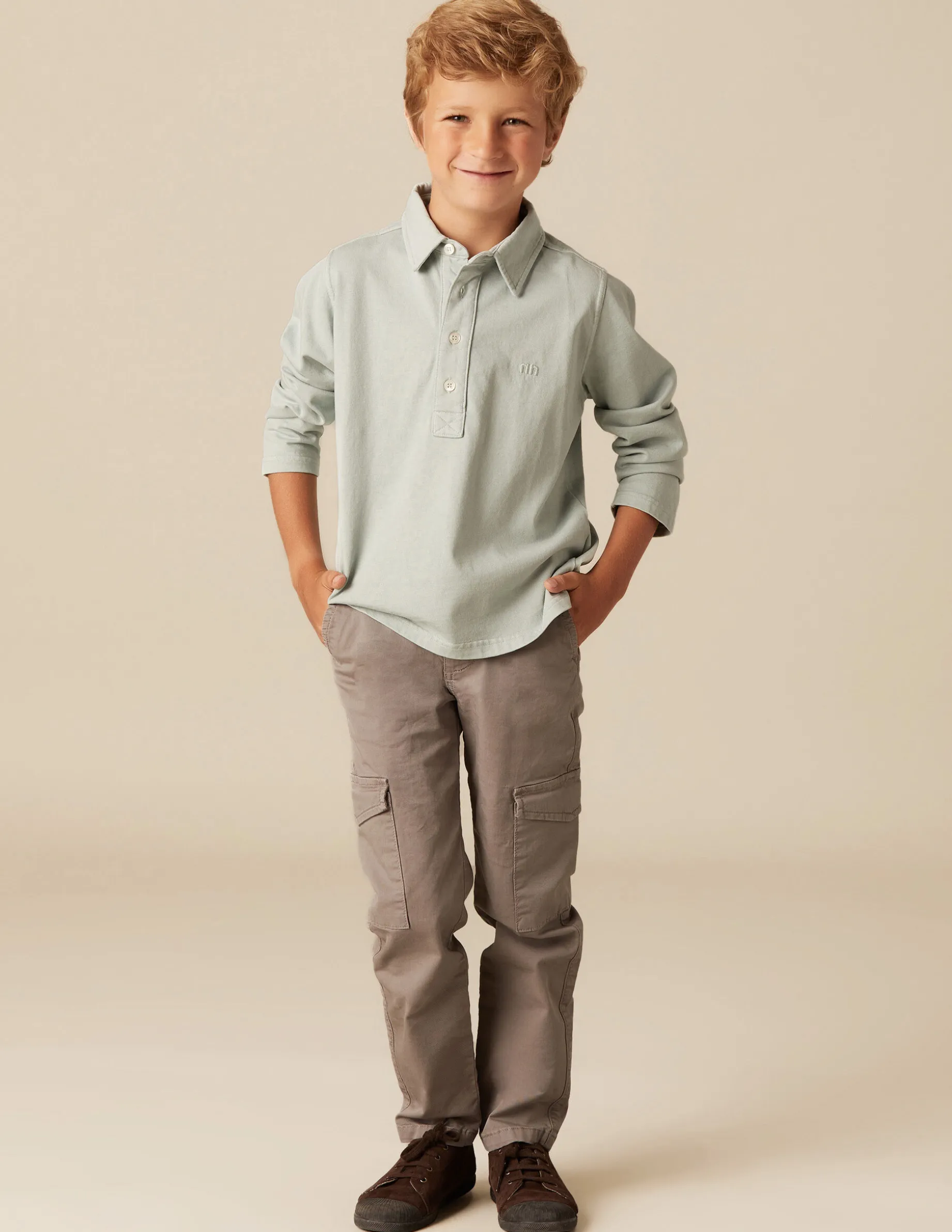 Polo de algodón de niño en colorido de la colección. Patrón con manga larga y detalle de logo bordado en el pecho.