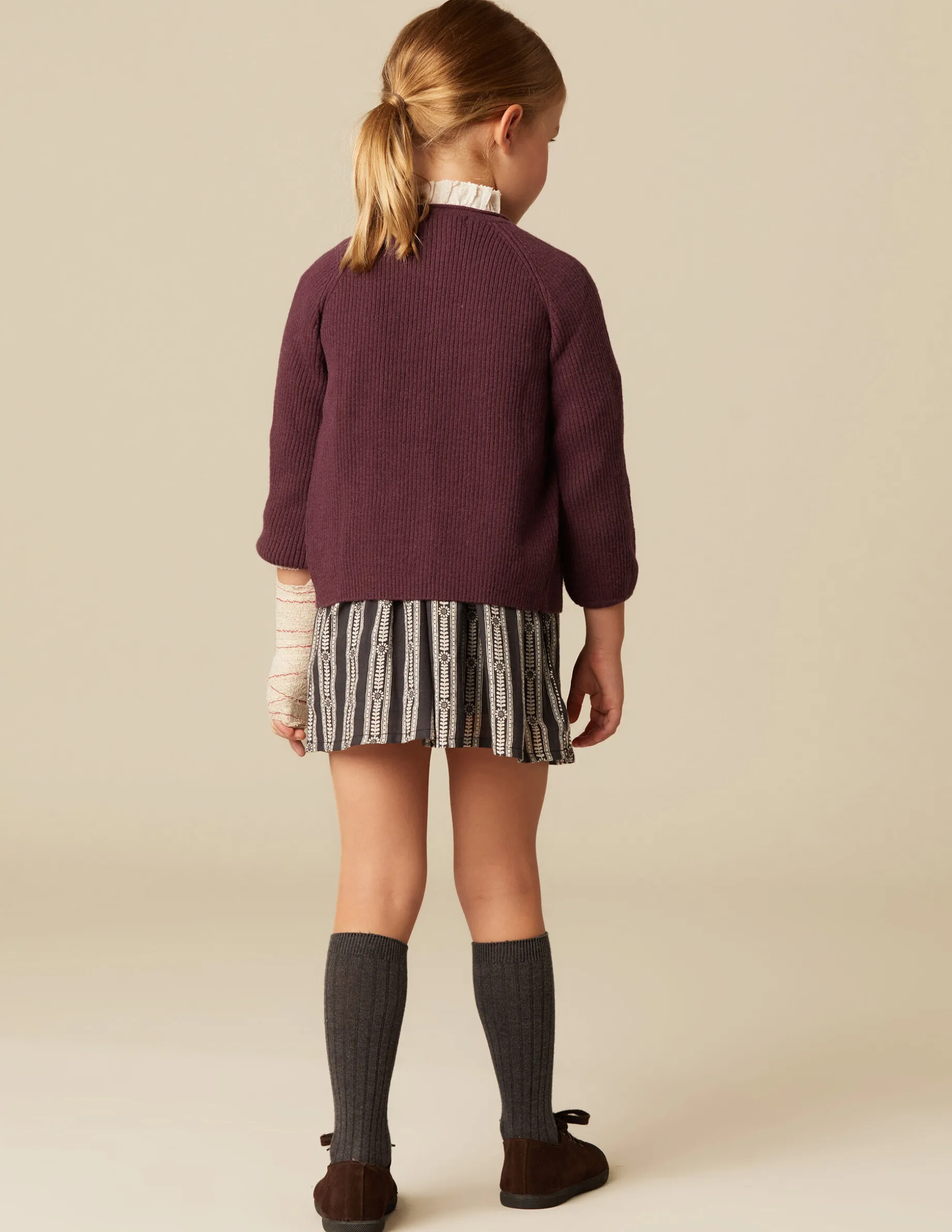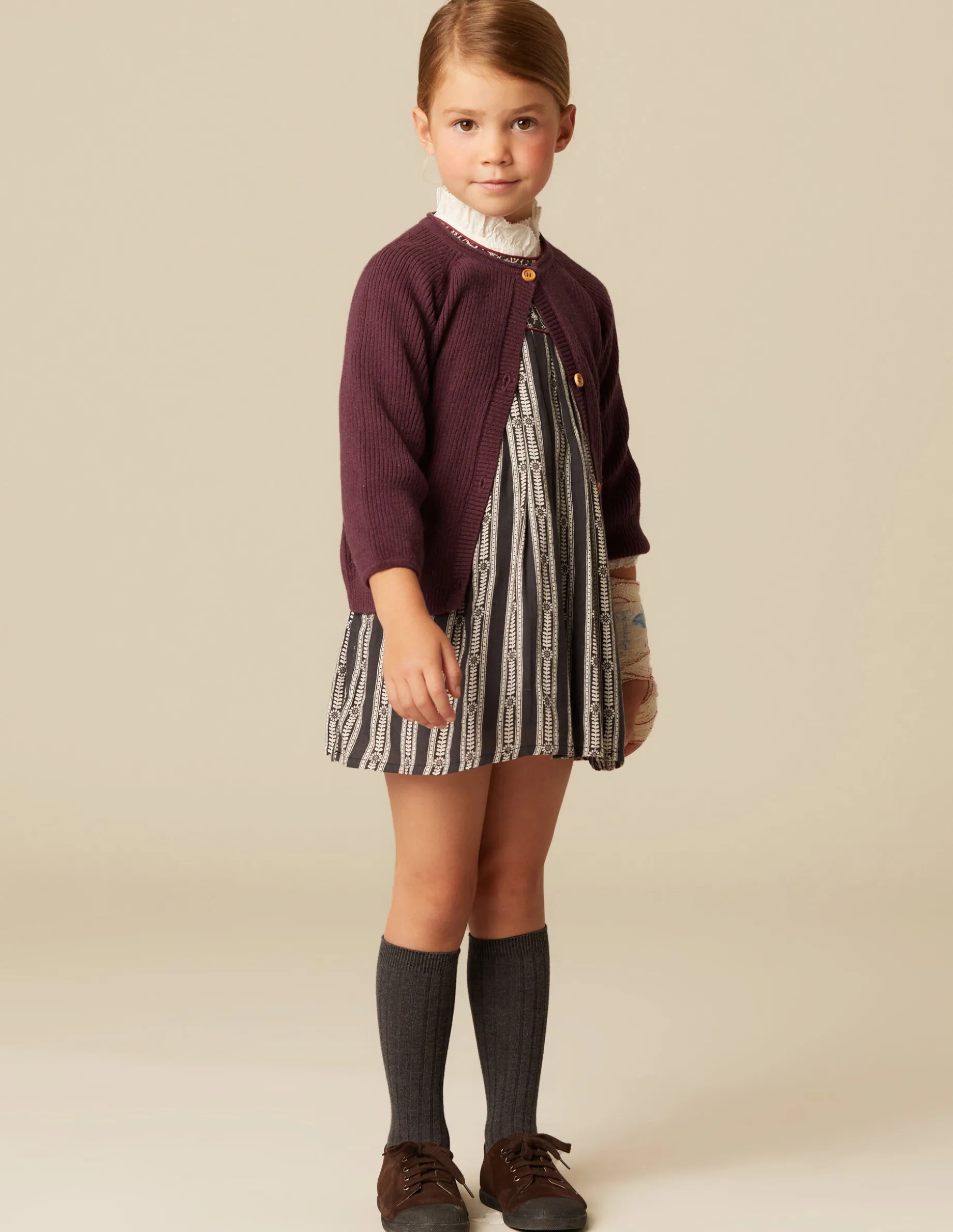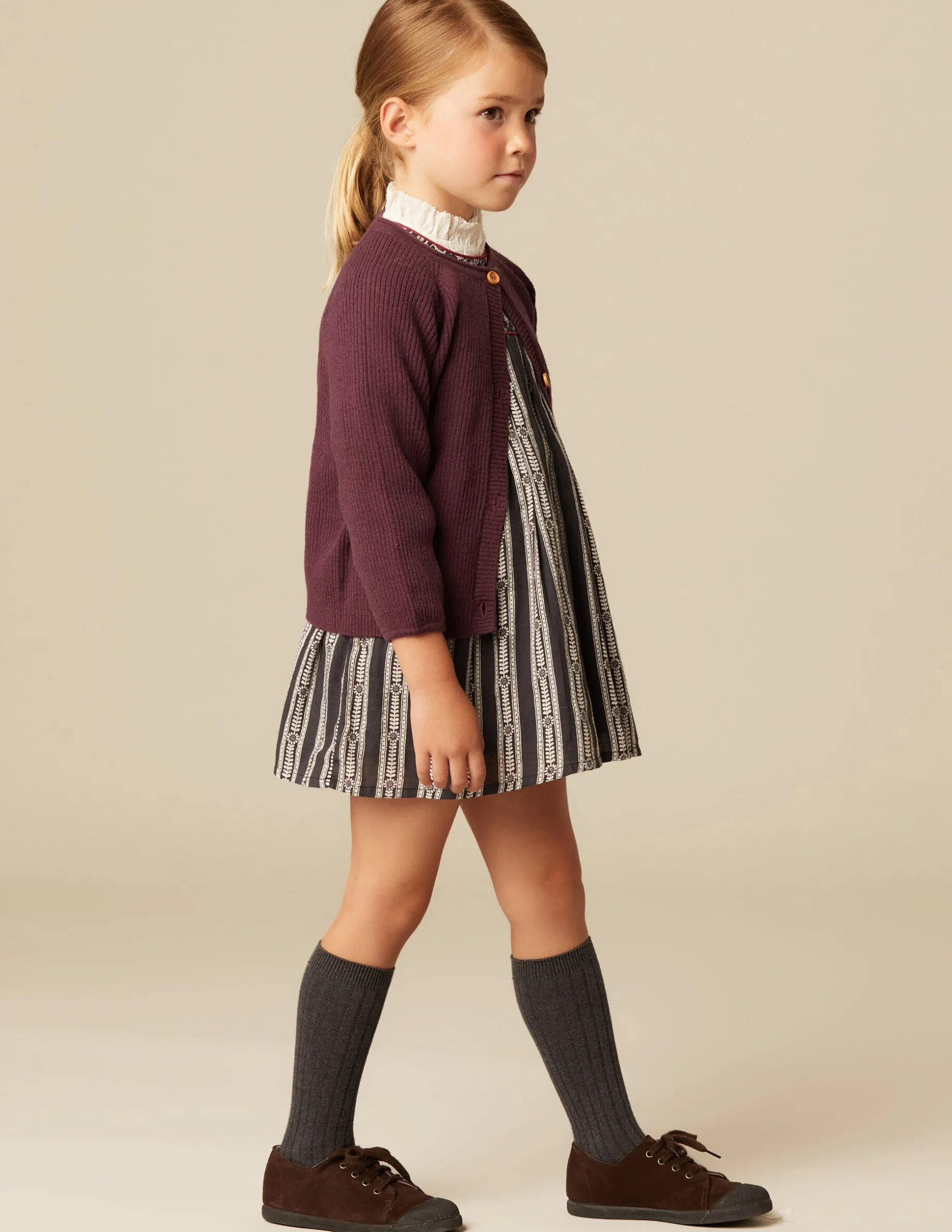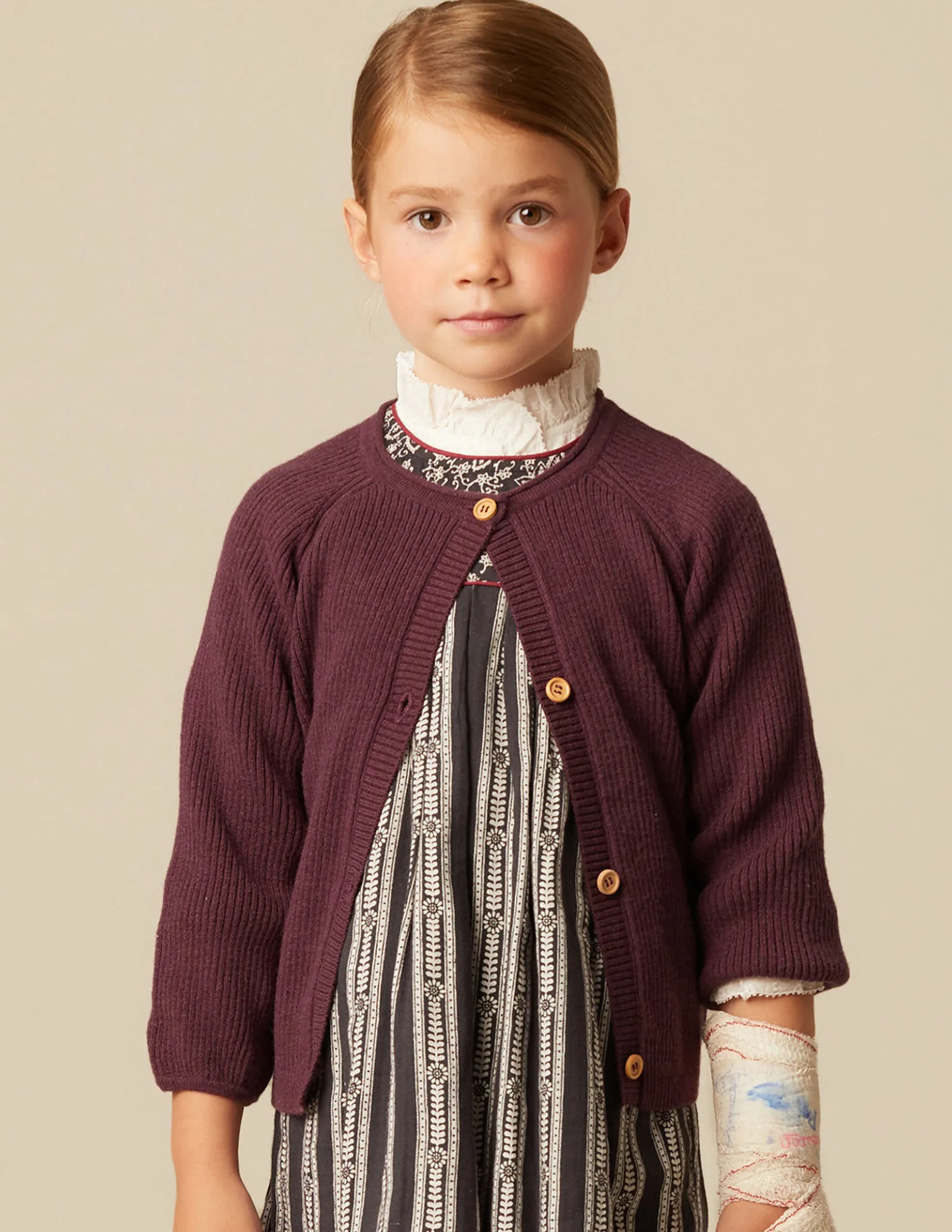 Chaqueta en punto de color mora, con botones de madera.