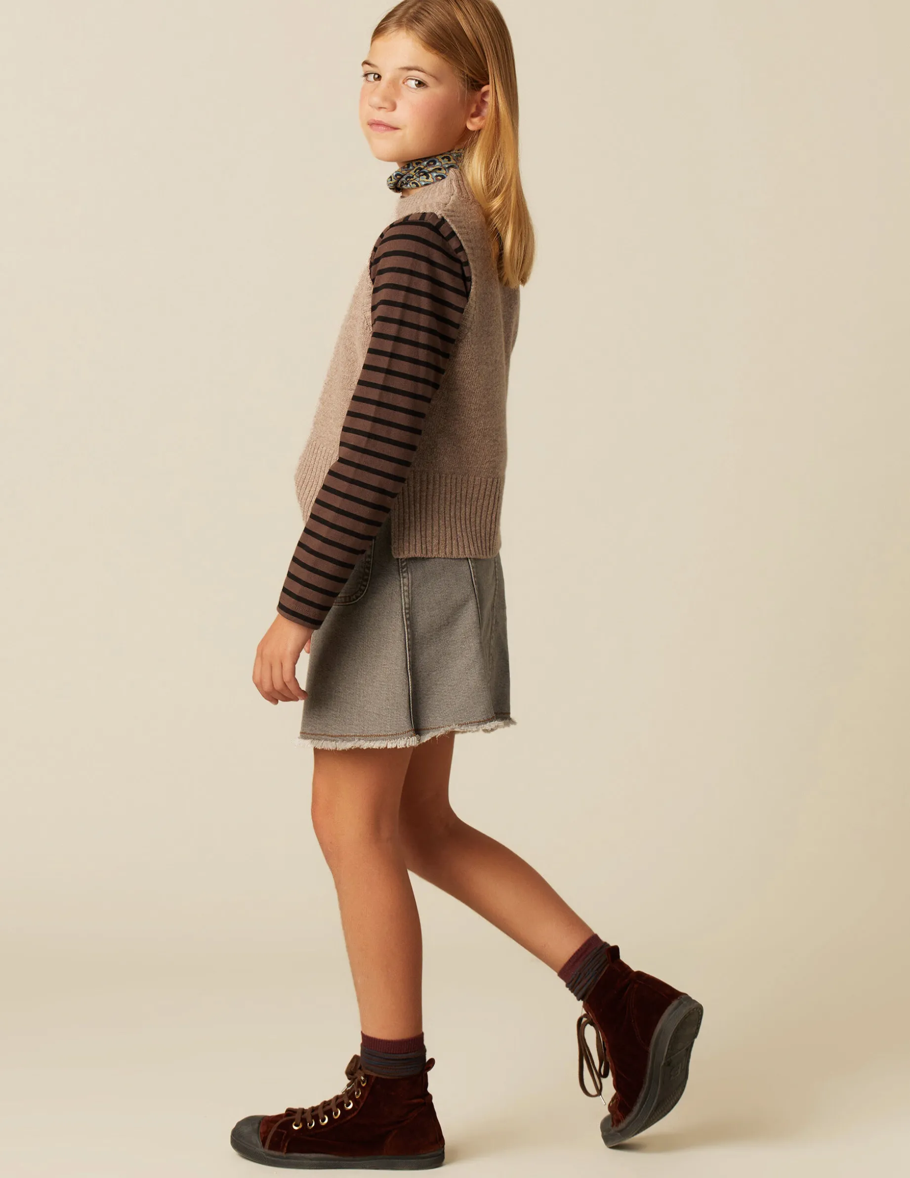 Minifalda vaquera con bolsillos y lavado desgastado. Cierre frontal con botones.