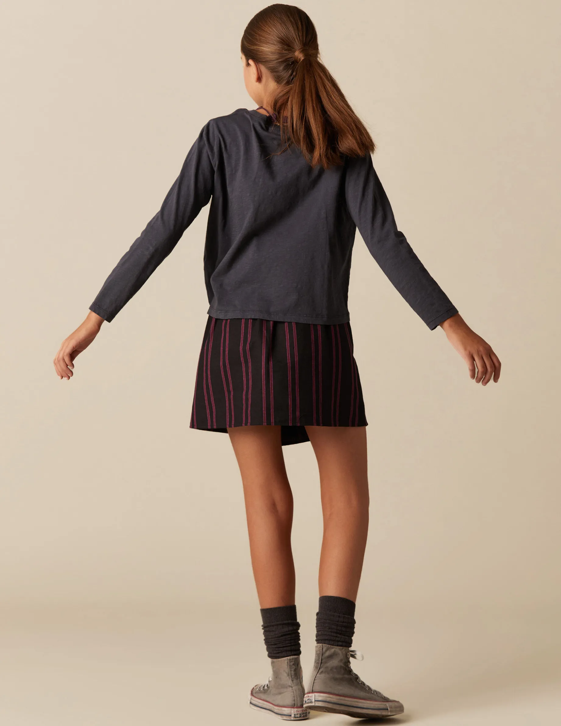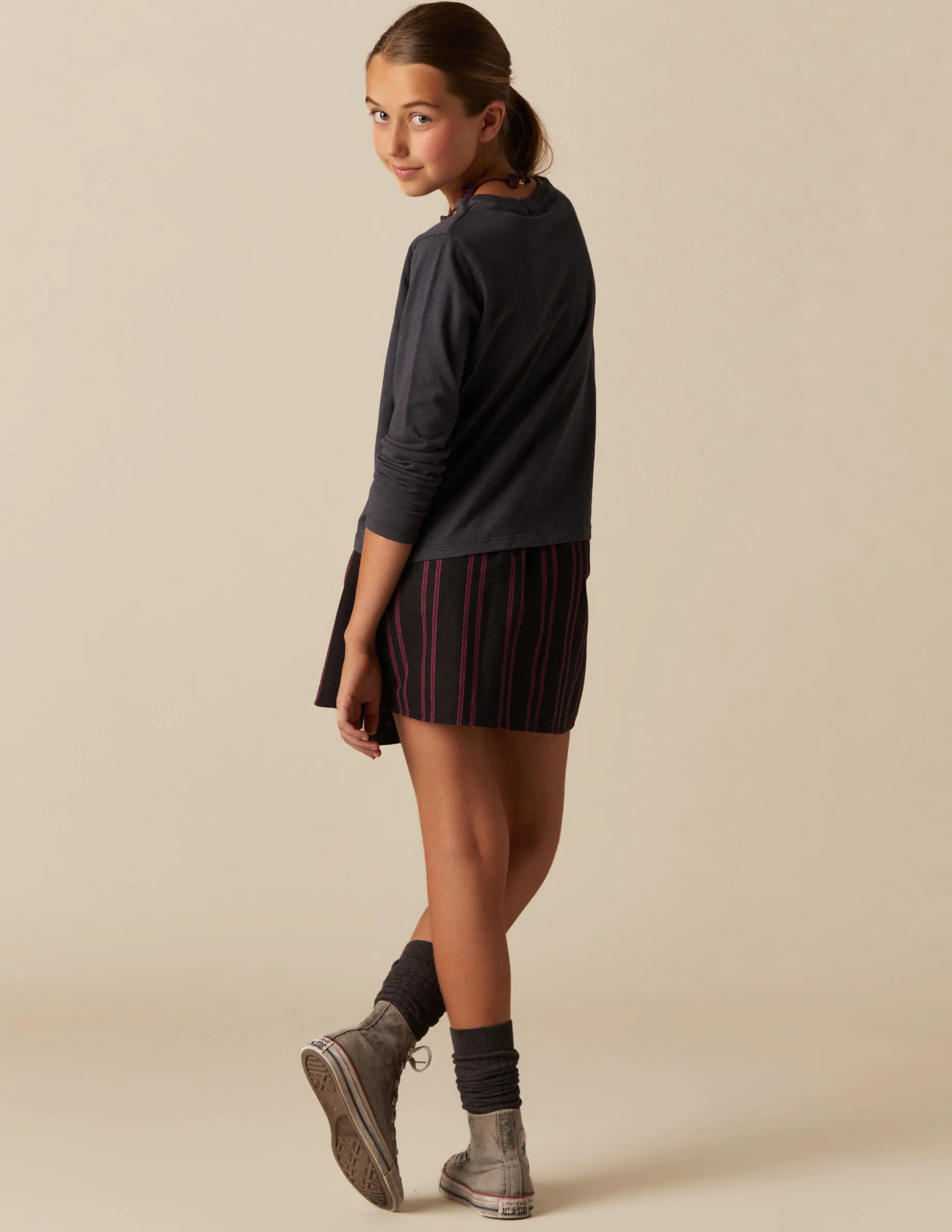 Falda corta de teen, en tejido de algodón con raya tejida.