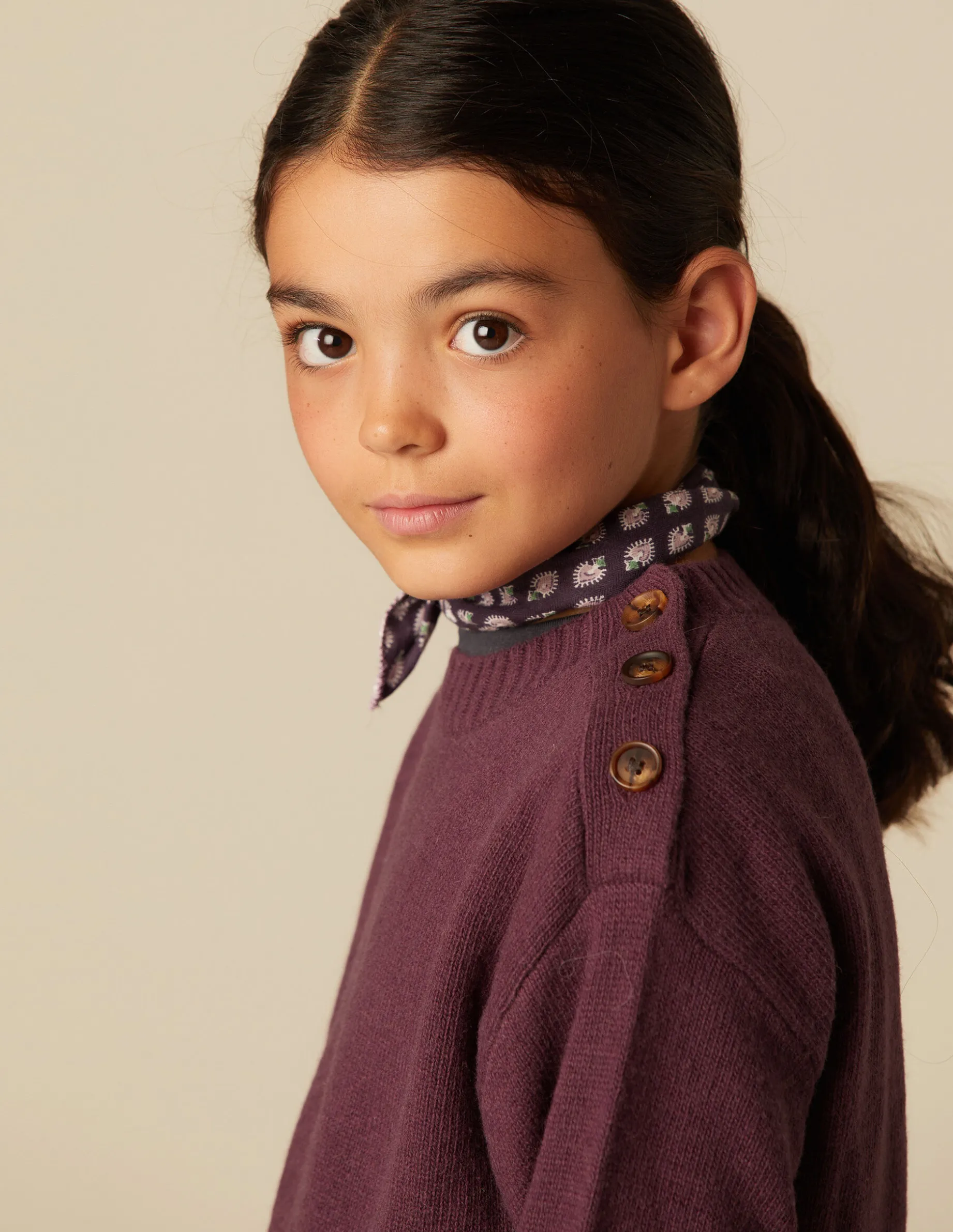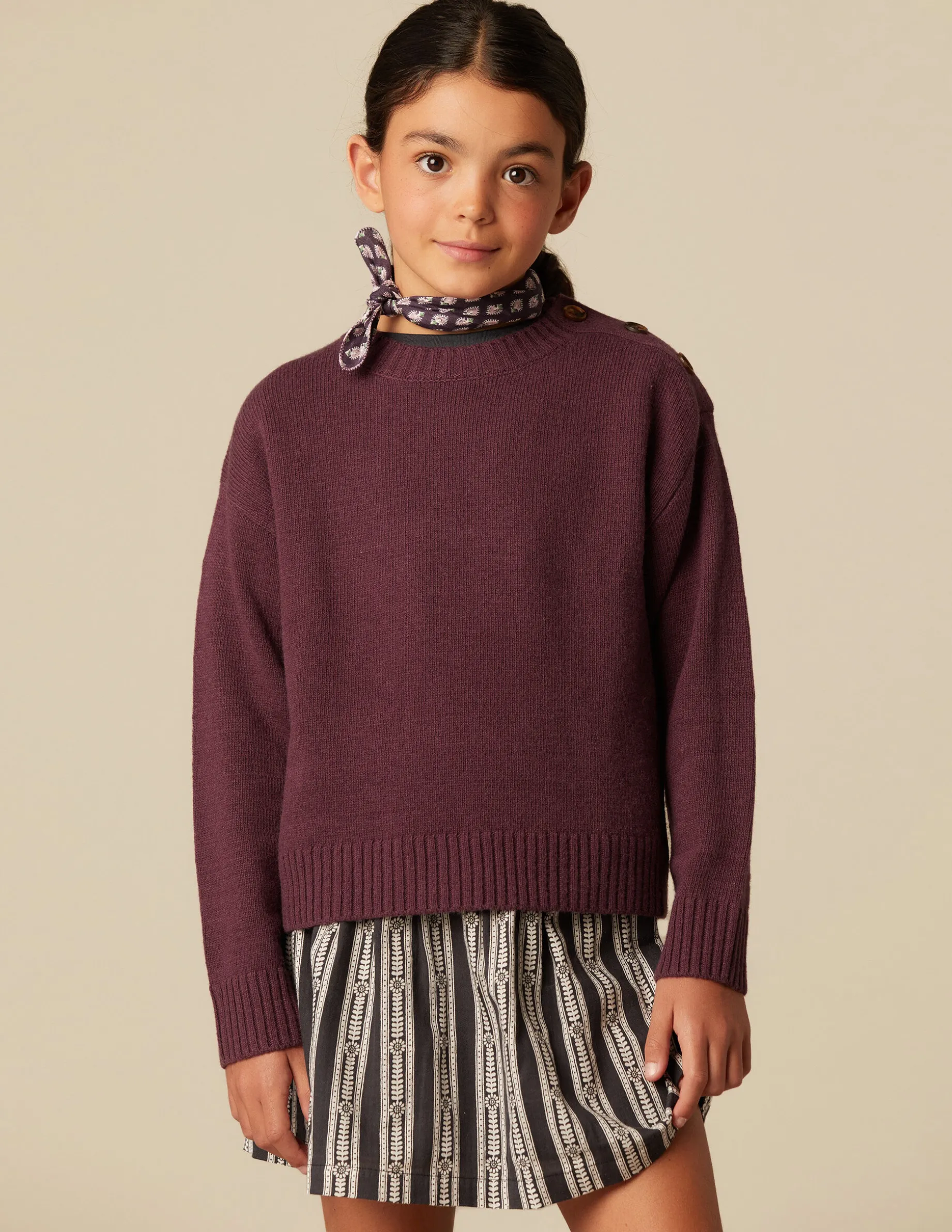 Jersey con acabados en canalé color mora. Detalle de botones en hombro.