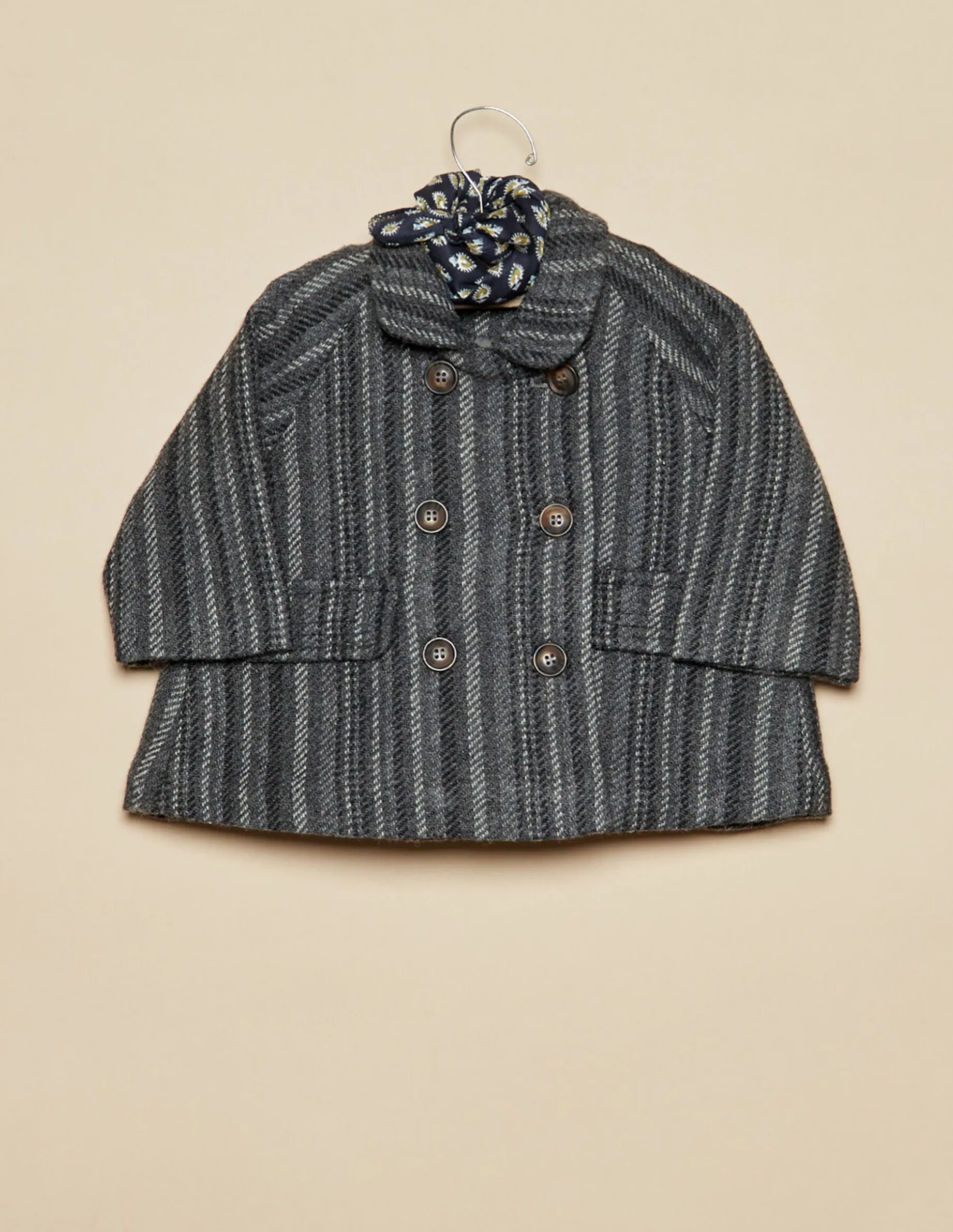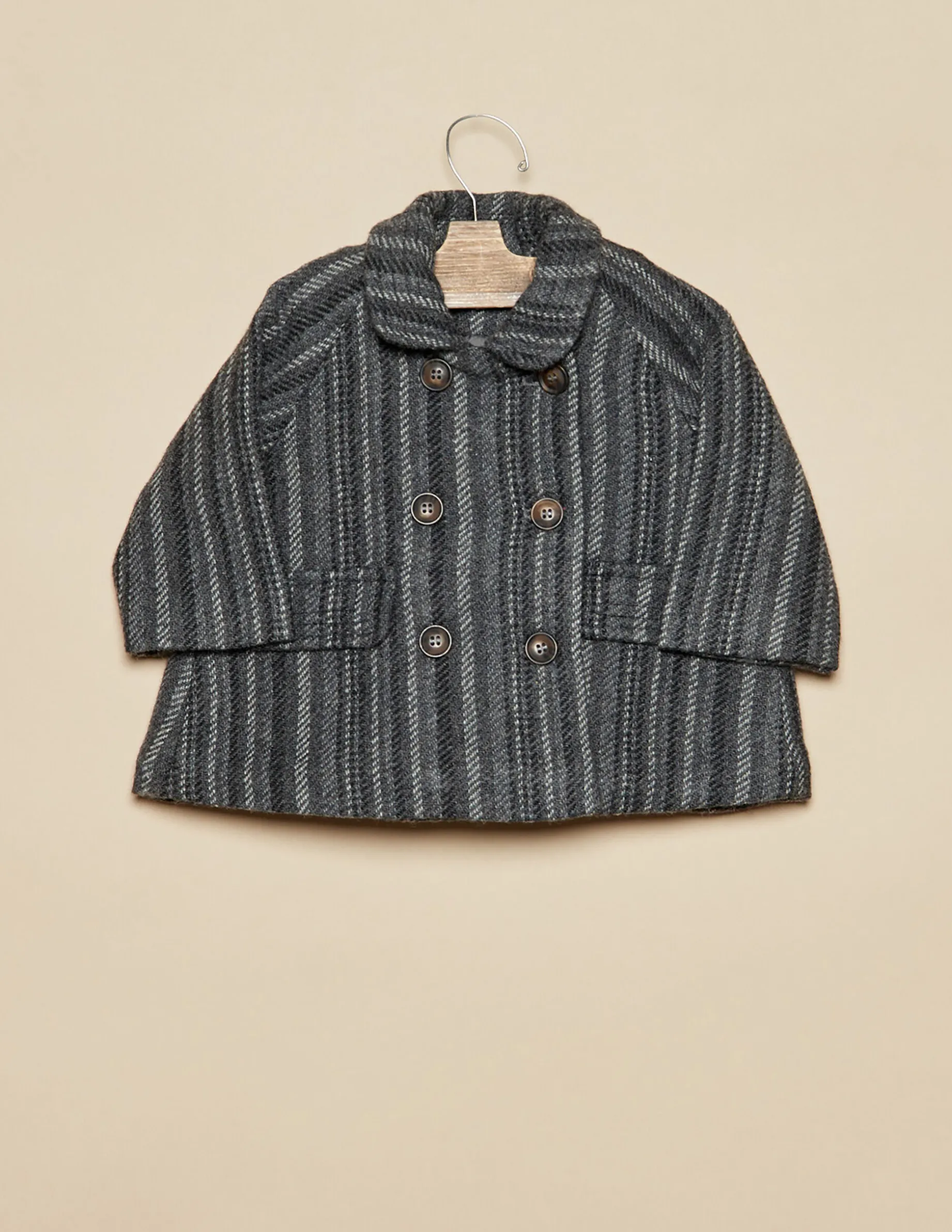 Abrigo doble botonadura en tejido con rayas grises.