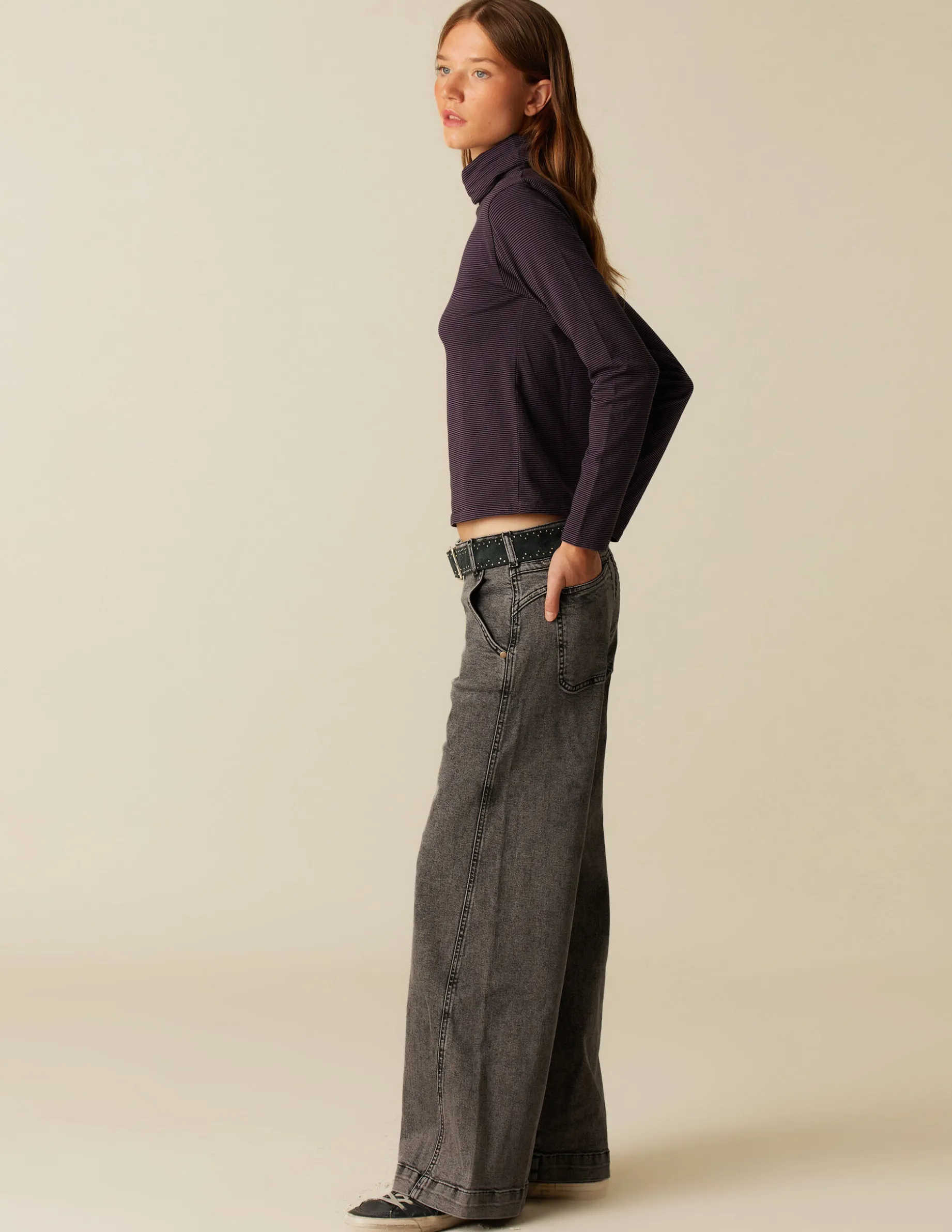 Camiseta benéfica de rayas, de chica. Patrón con cuello vuelto y manga larga.