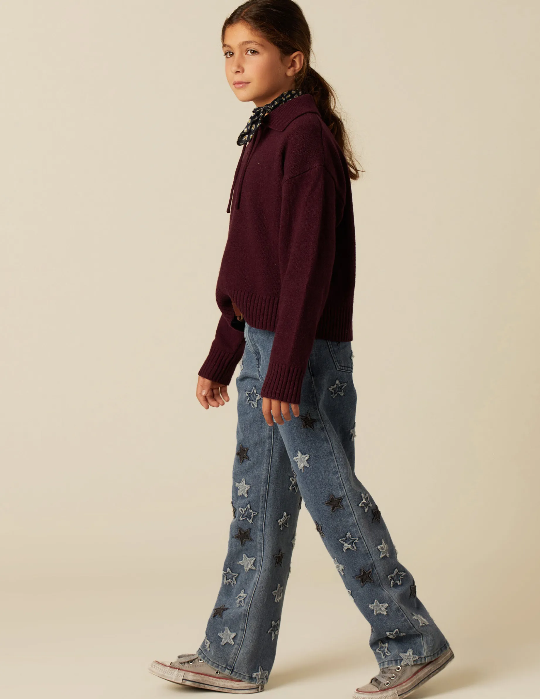 Jersey mora y cuello solapa con detalle de lazo.