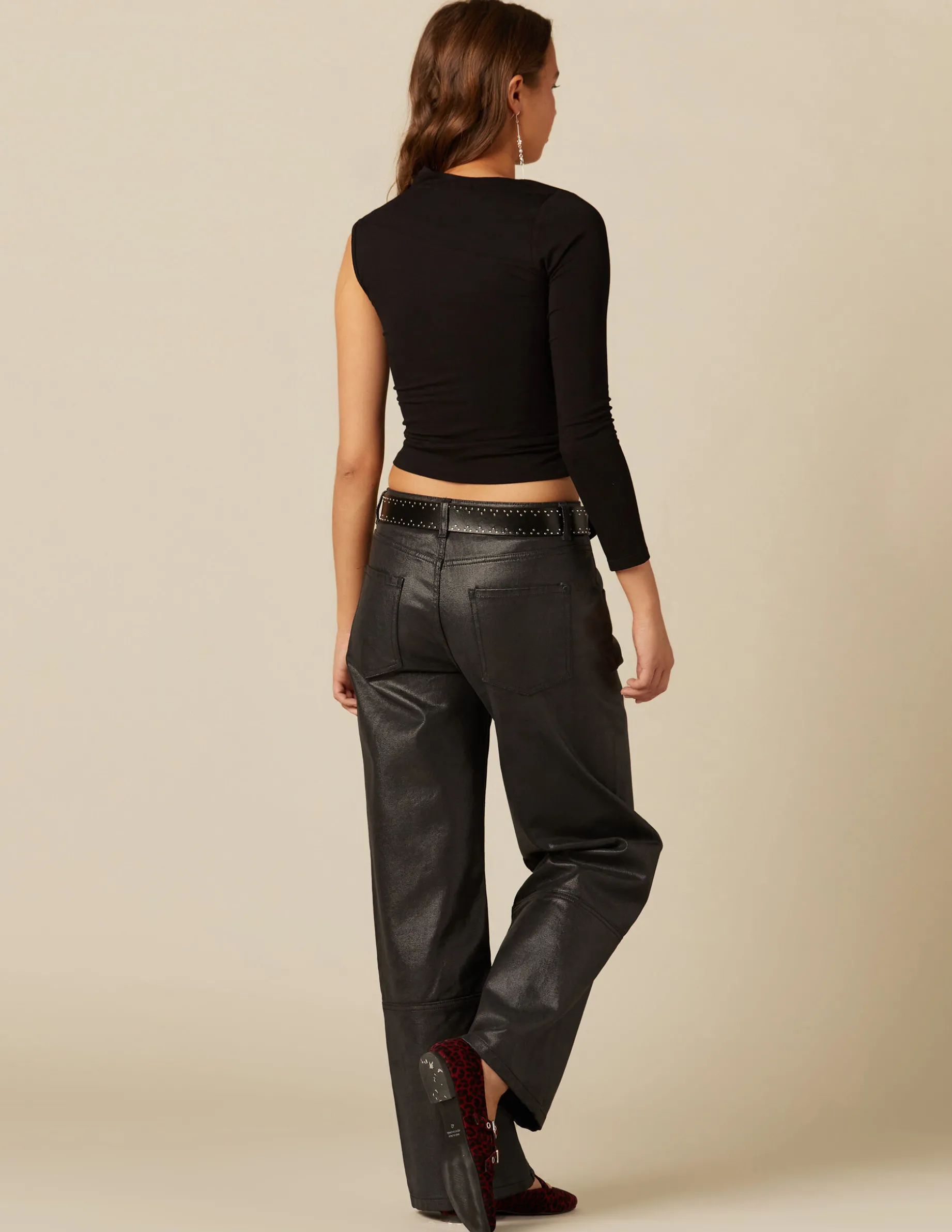 Camiseta de chica, en algodón de color negro. Patrón con manga larga solo en un lado. Escote en forma de lágrima.