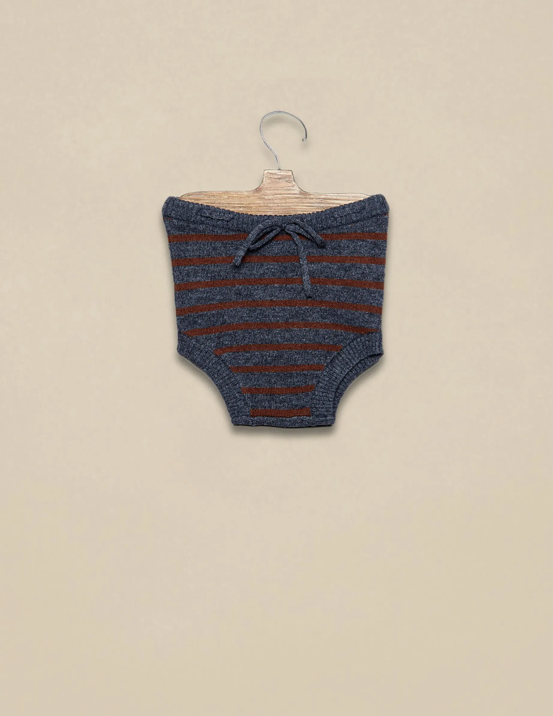 Pololo de punto con rayas marrón y marengo. Se ajusta con lazo en la cintura.