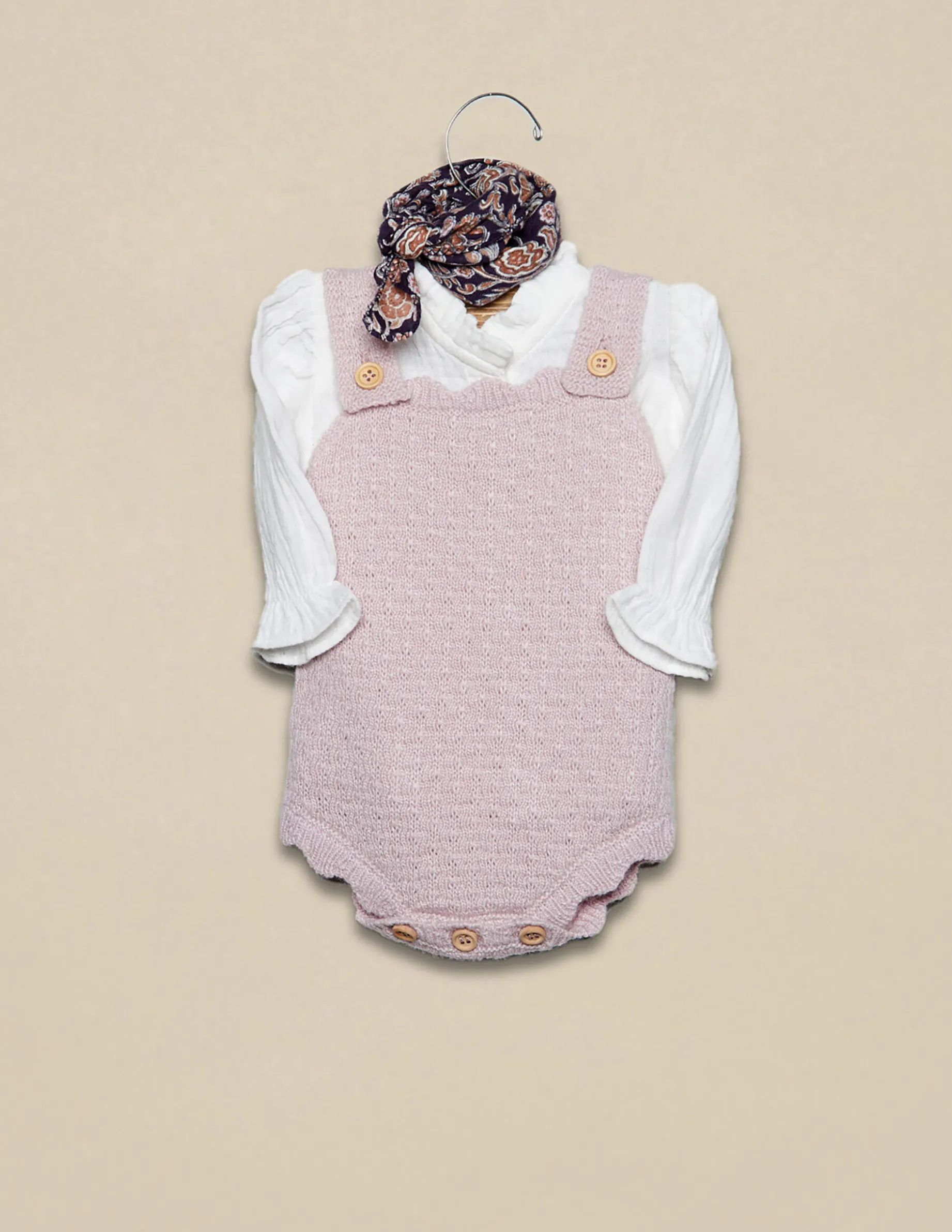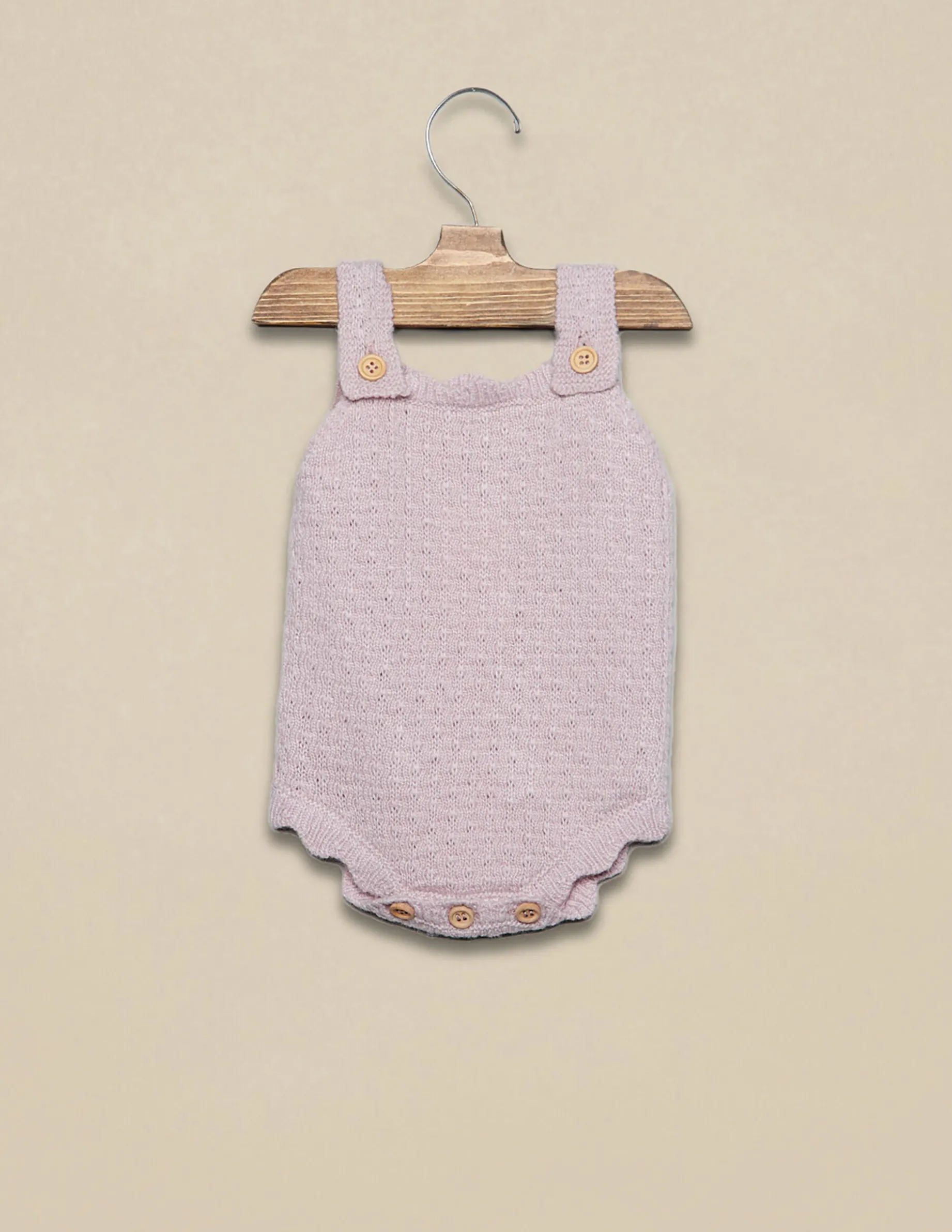 Ranita de bebé en punto de color rosa. Cierre por el delantero y en la entrepierna con botones de madera.