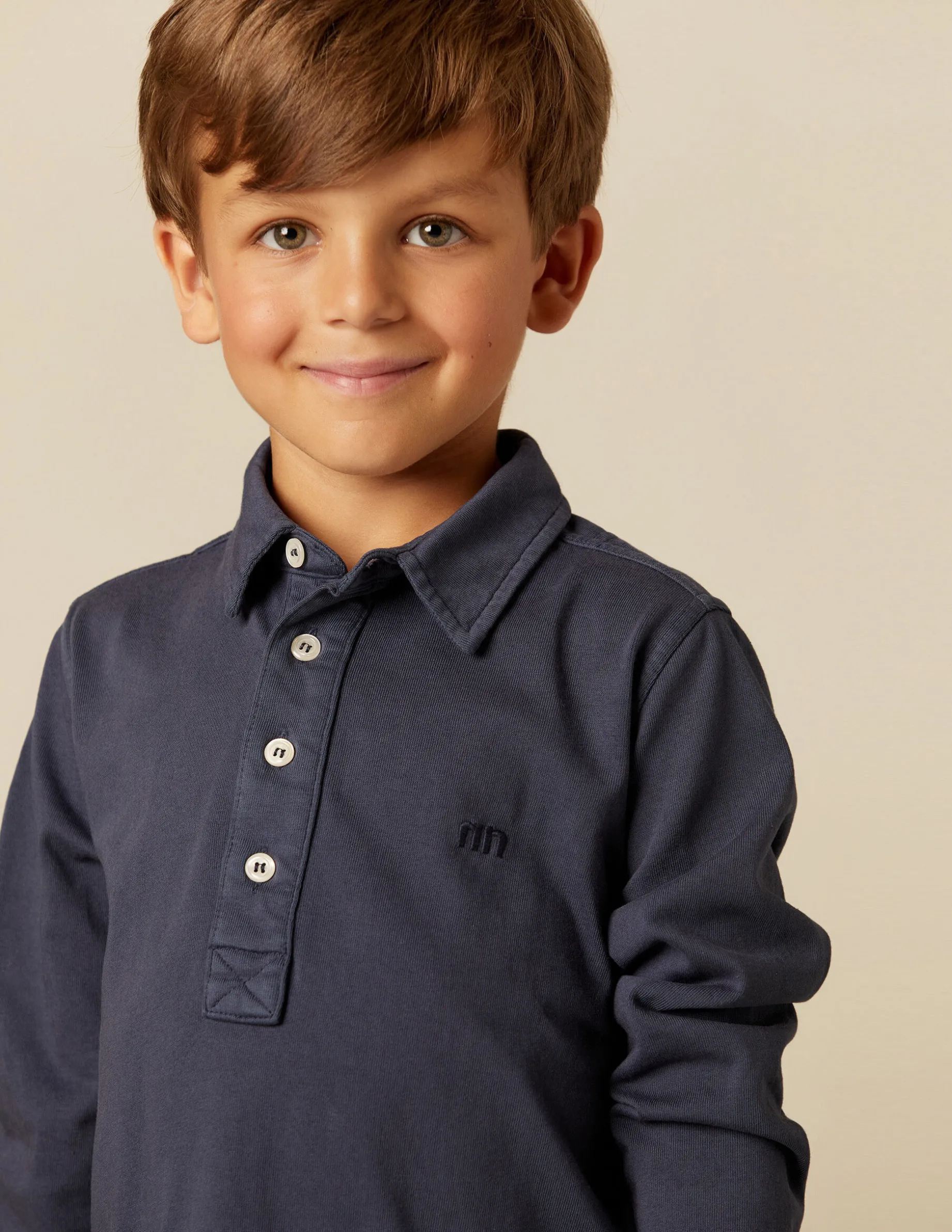 Polo de algodón de niño en colorido de la colección. Patrón con manga larga y detalle de logo bordado en el pecho.