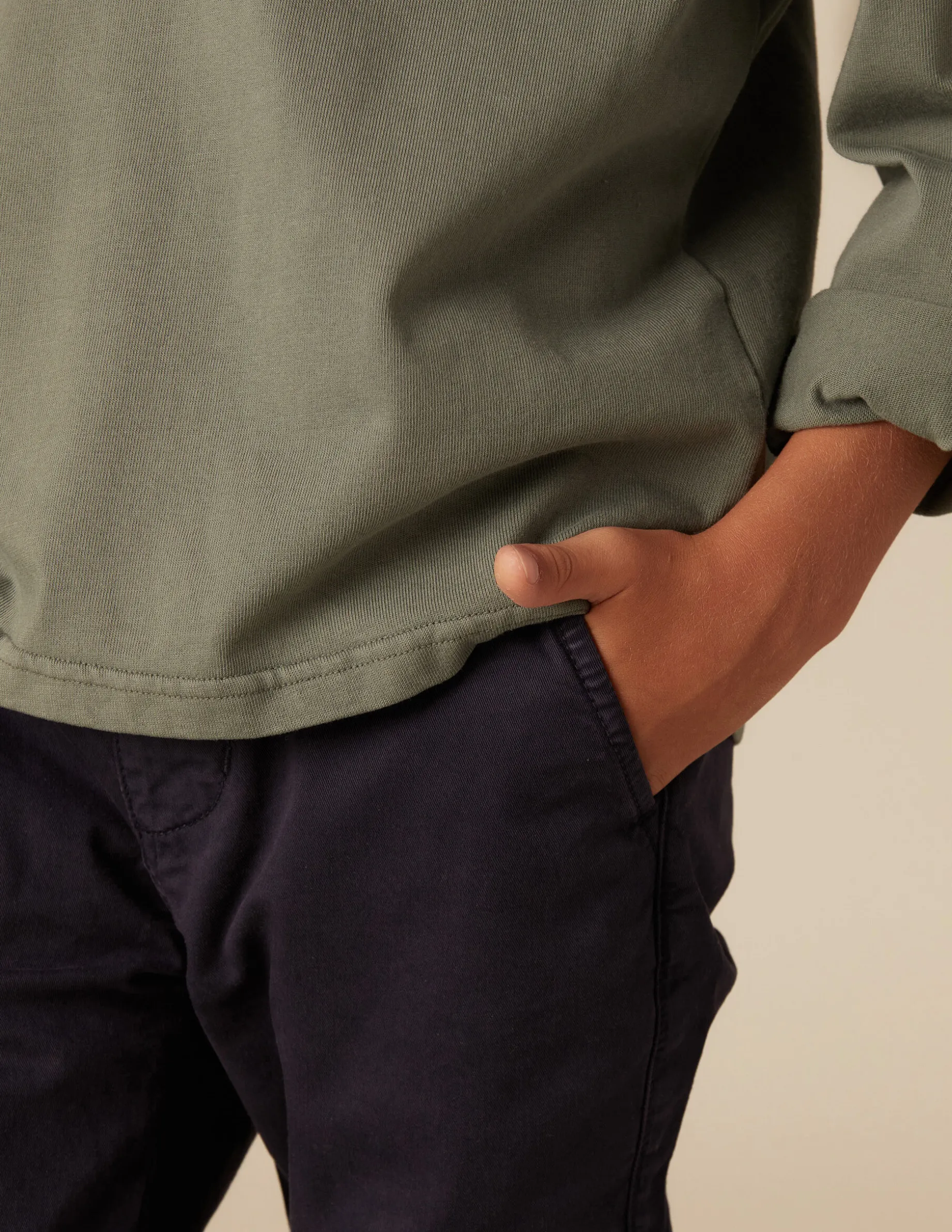 Pantalón cargo largo de algodón lavado. Bolsillos frontales, en espalda y de plastrón con solapa en perneras. Cierre con cremallera y botón.