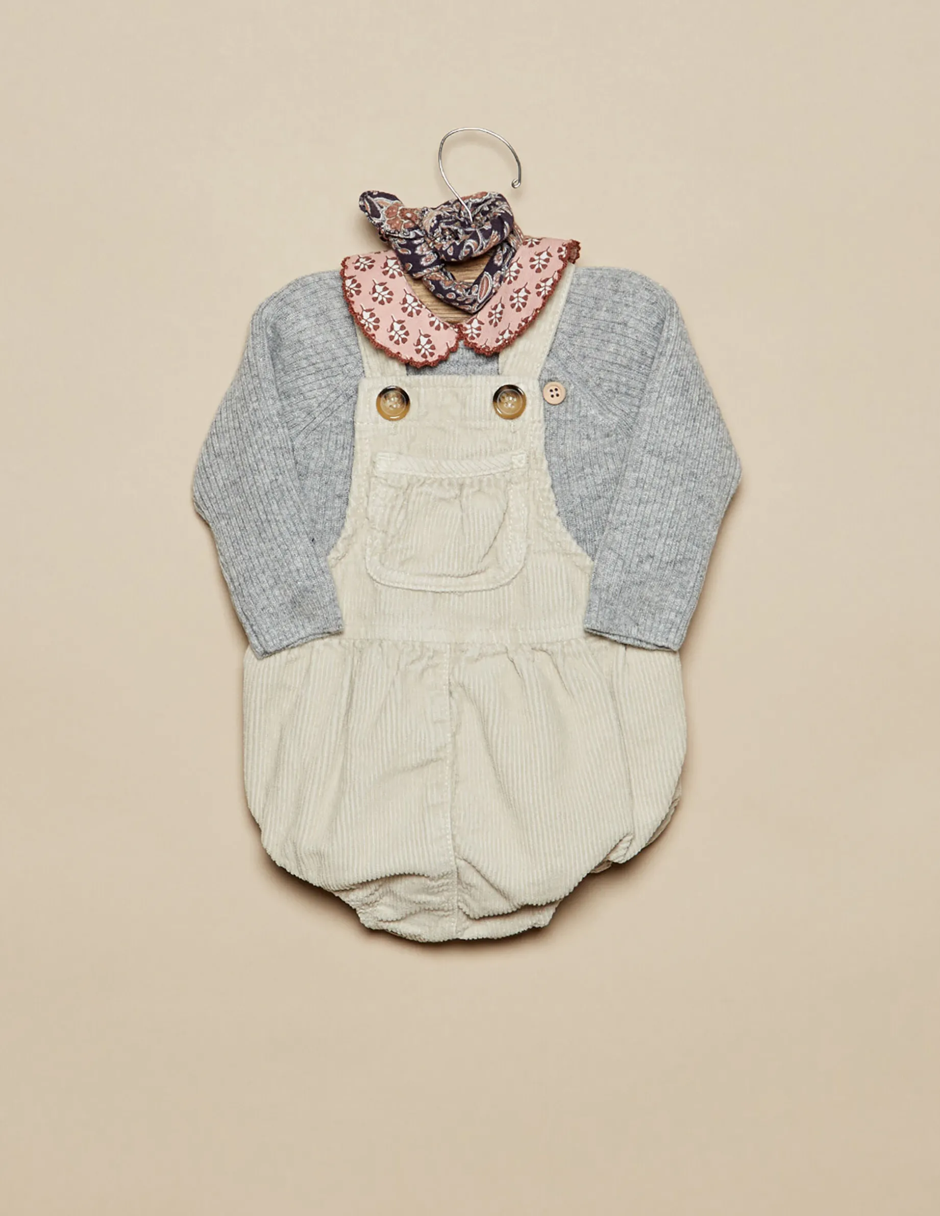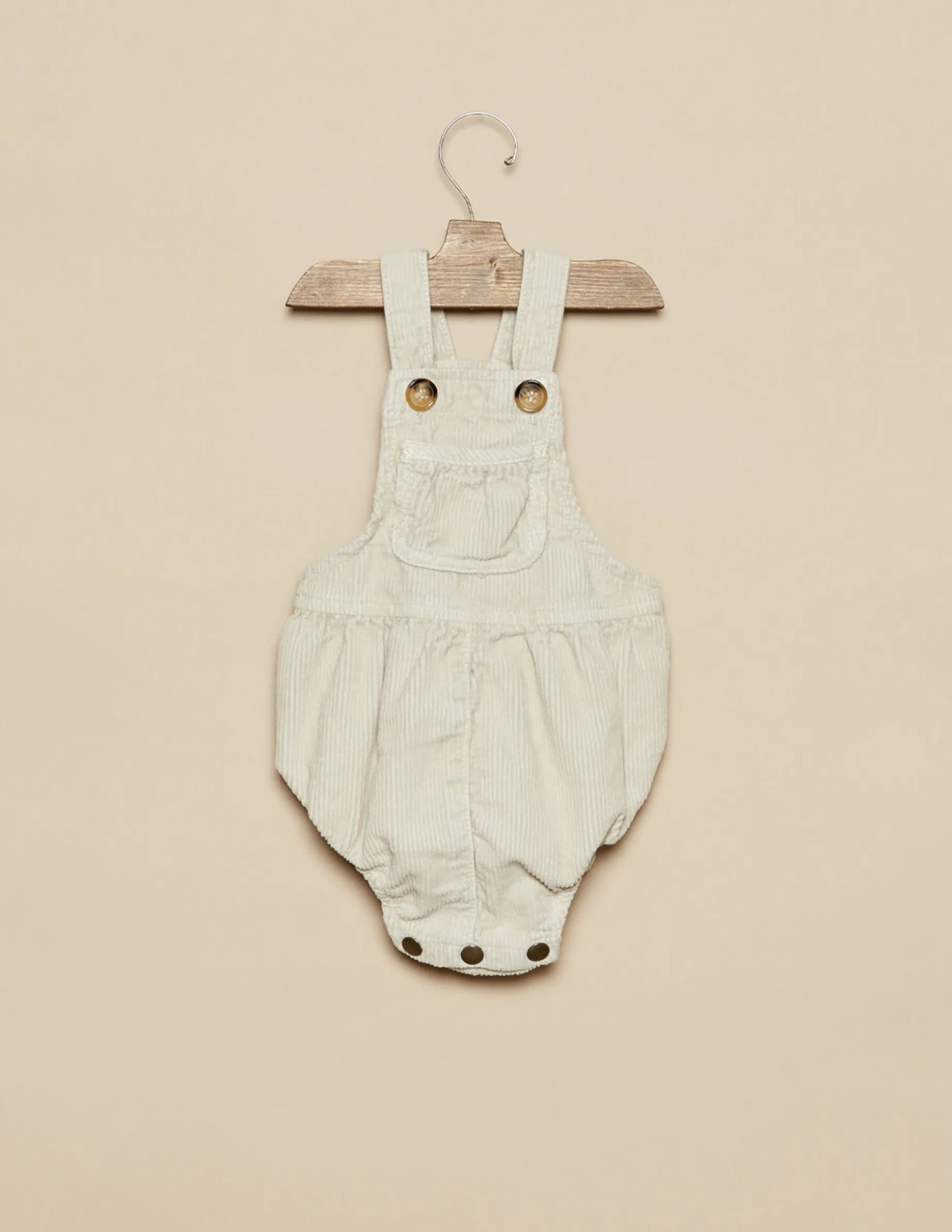 Ranita de pana en color arena. Detalle de bolsillo frontal. Tirantes con ojal y botón. Cierre con botones en el bajo.