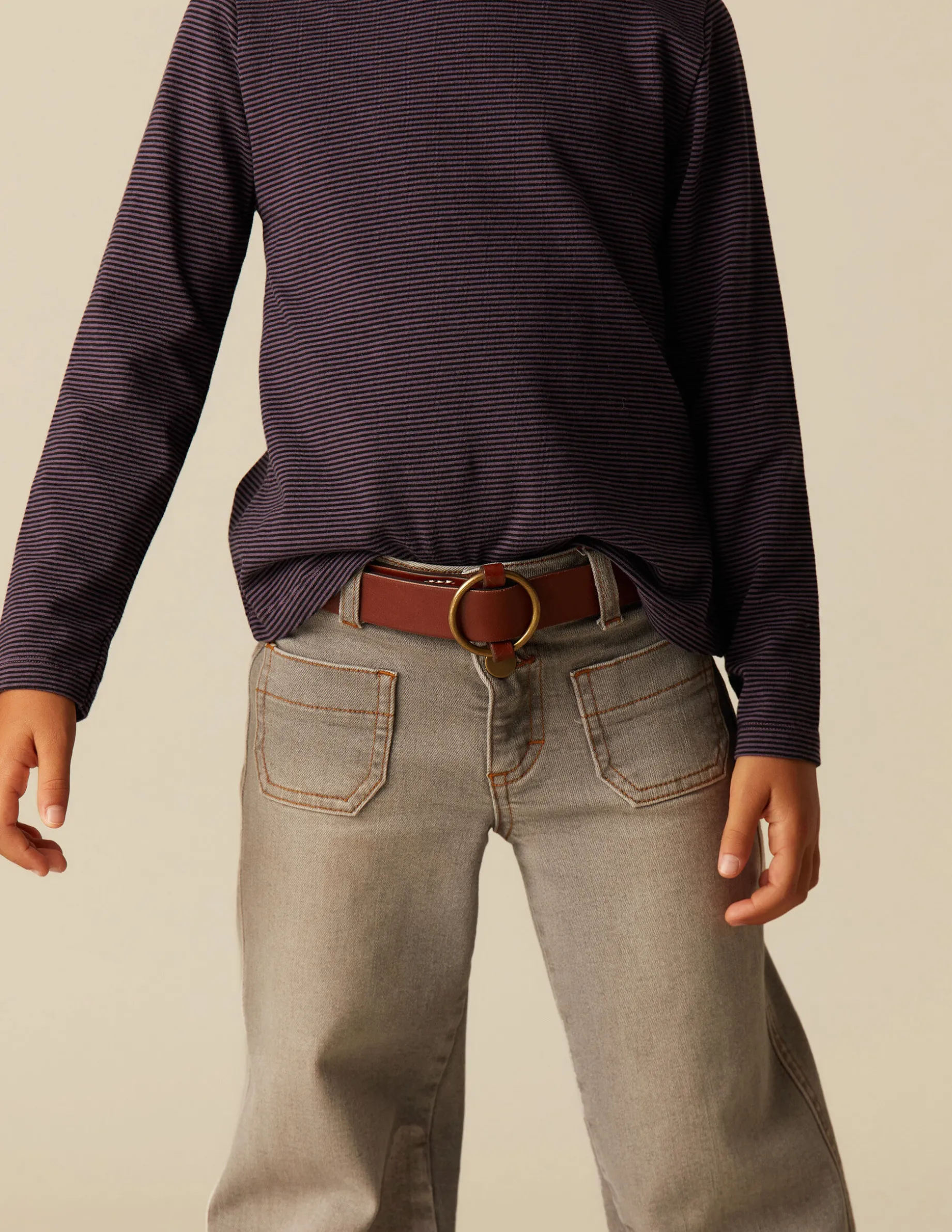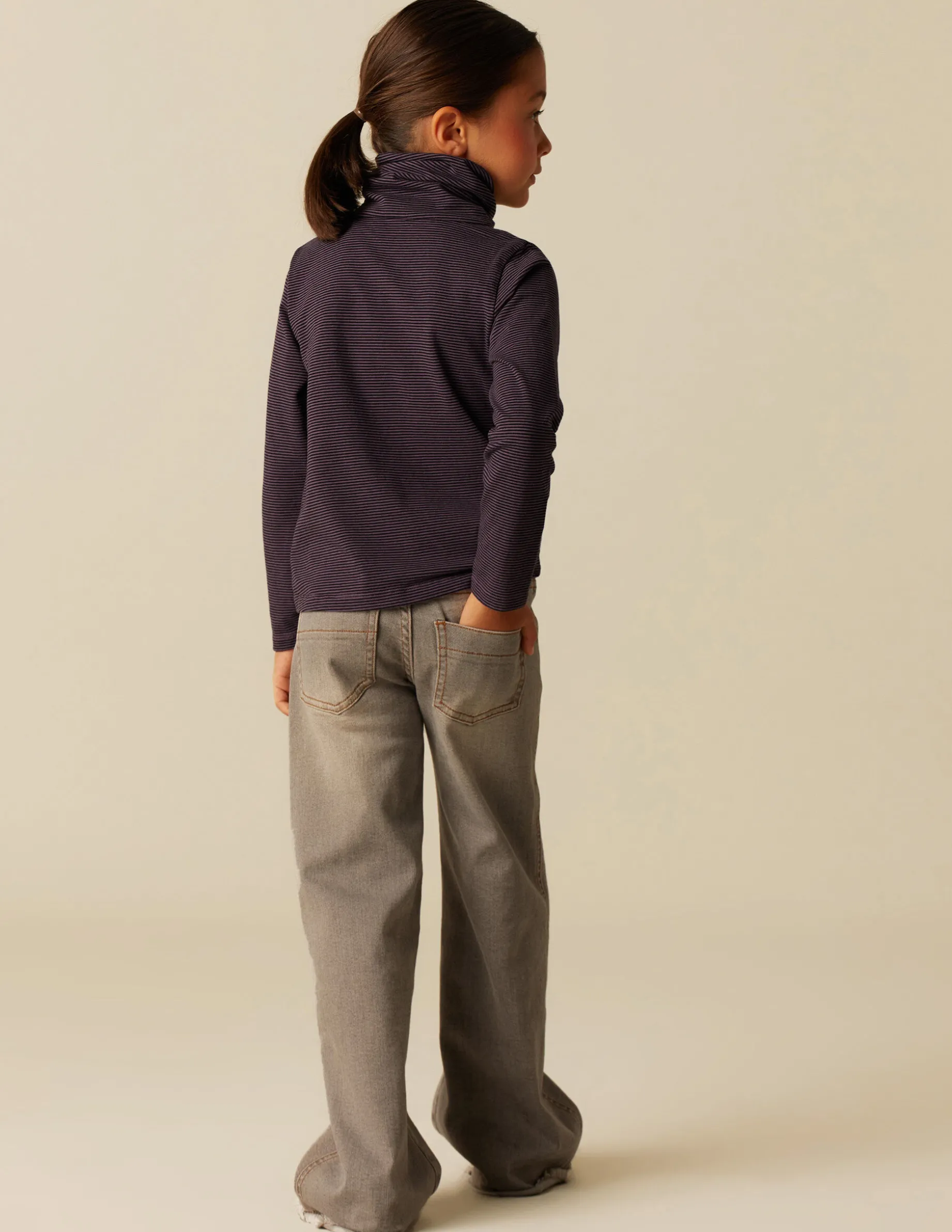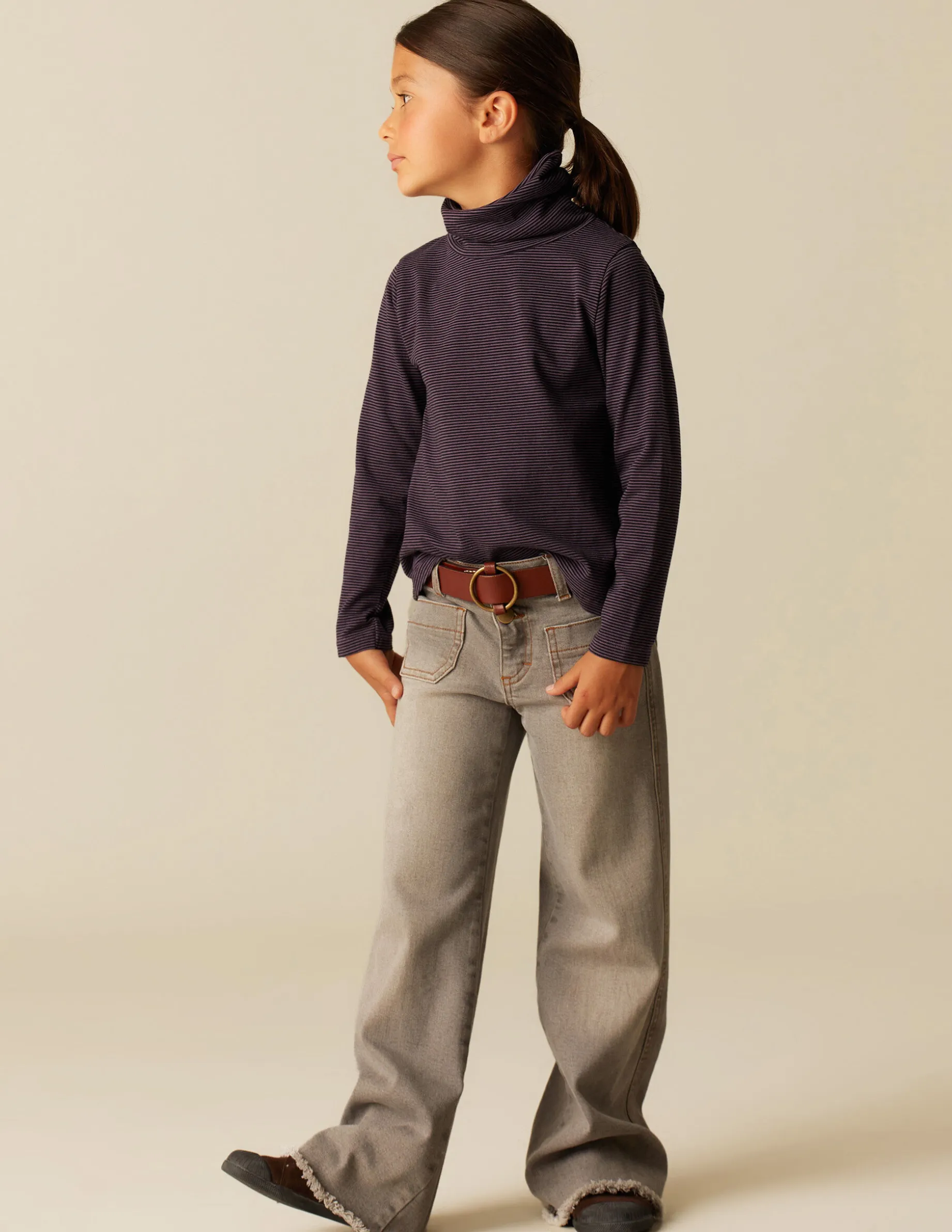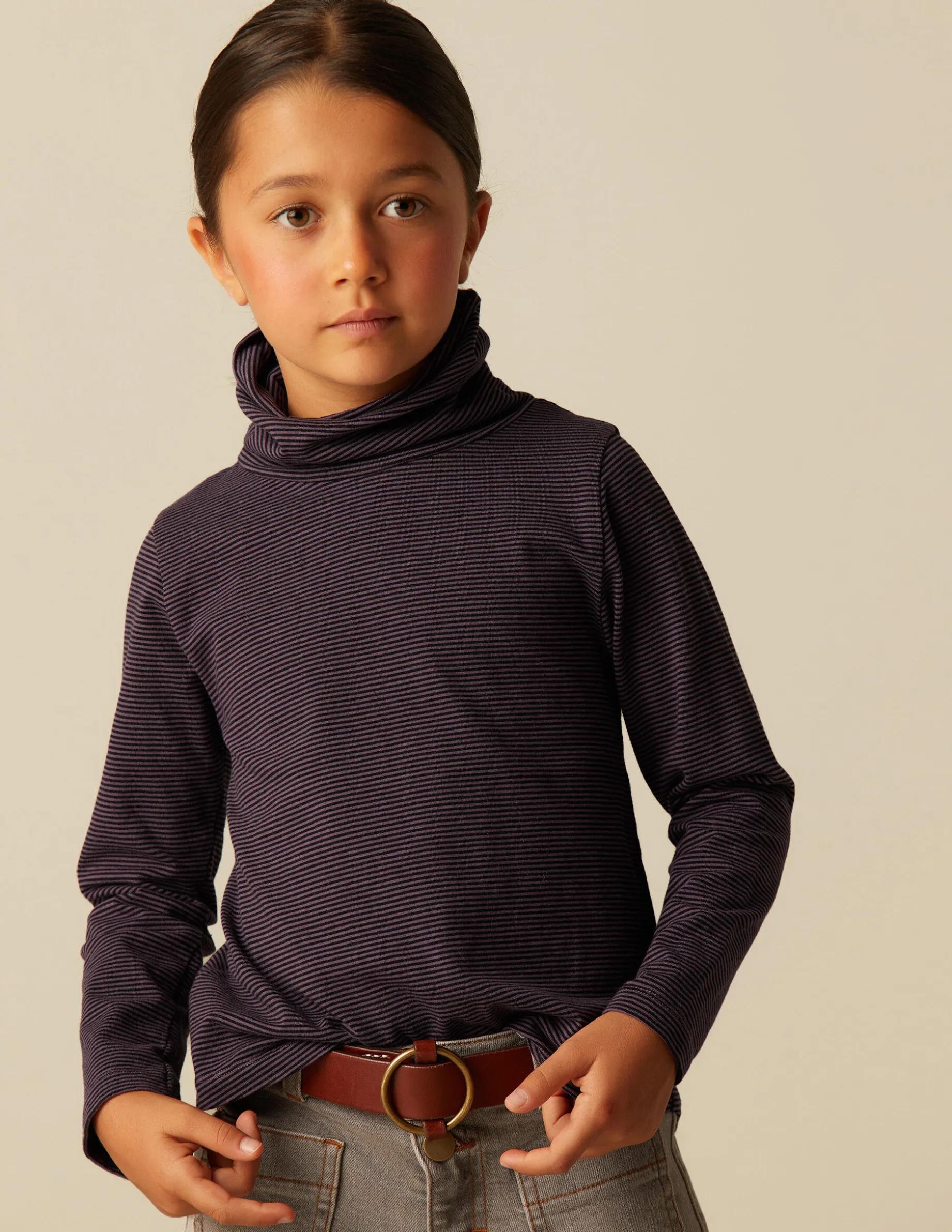 Camiseta benéfica de rayas, de niña. Patrón con cuello vuelto y manga larga.
