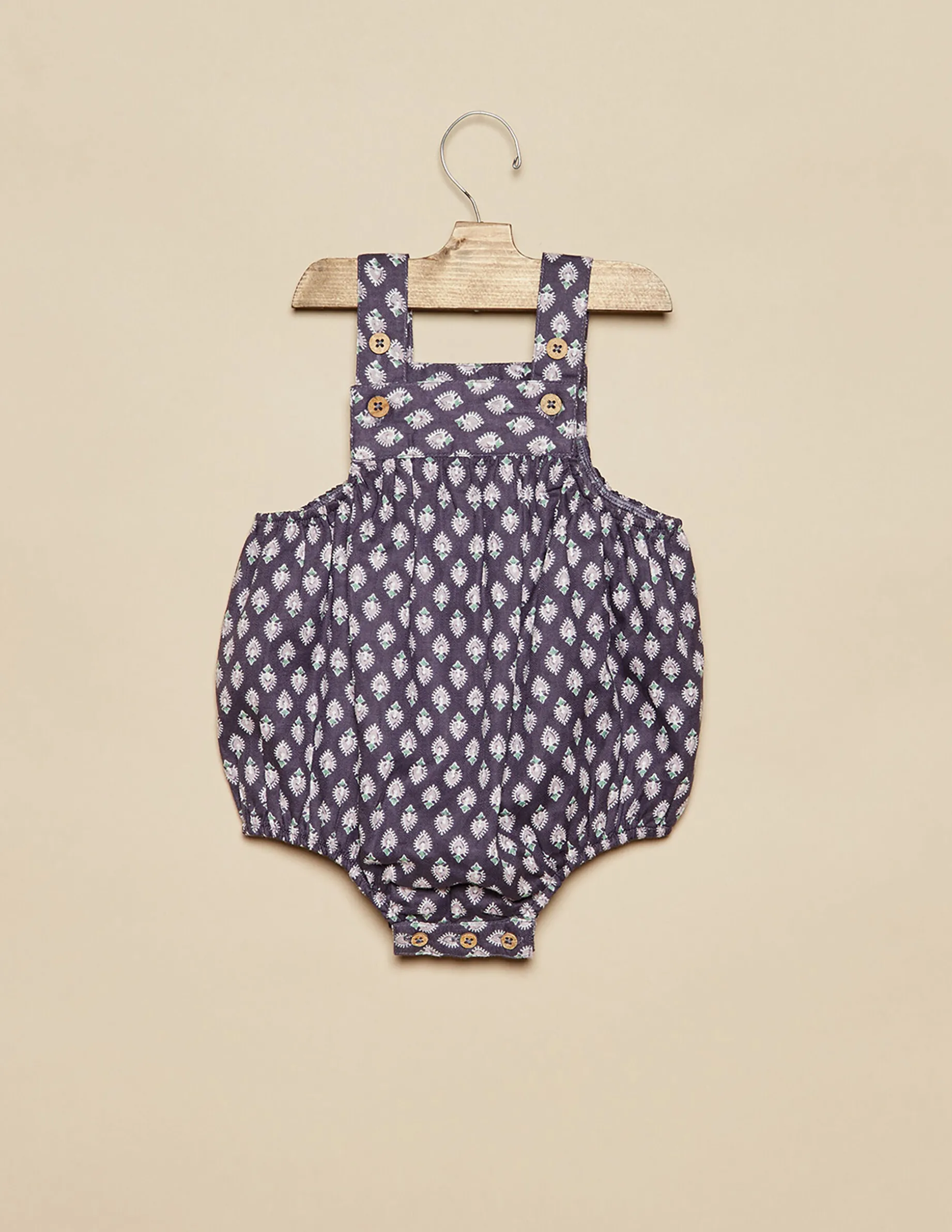 Ranita de bebé, en print de la colección. Patrón con tirantes ajustables y botón en la entrepierna. Disponible en dos colores.