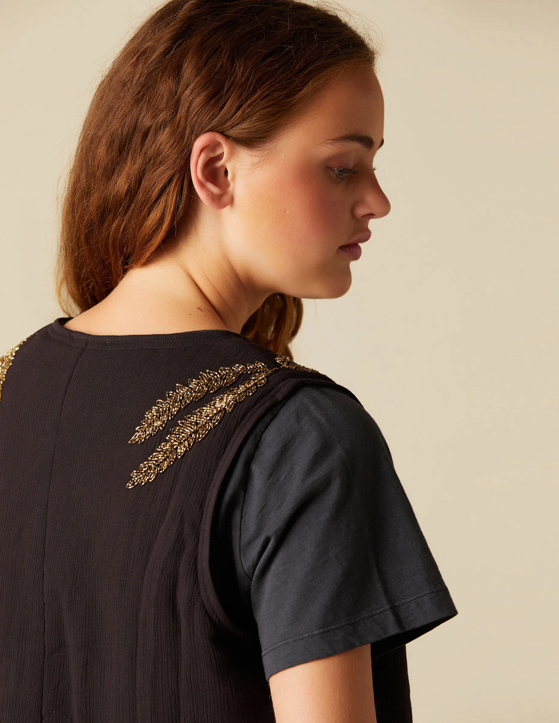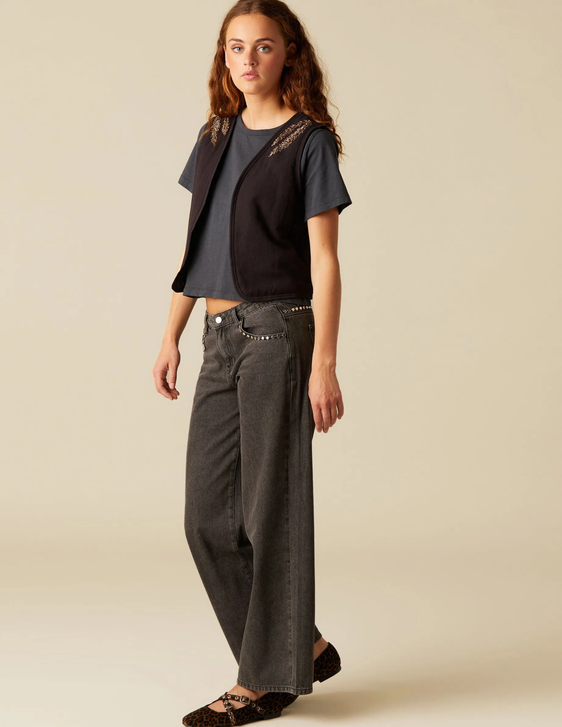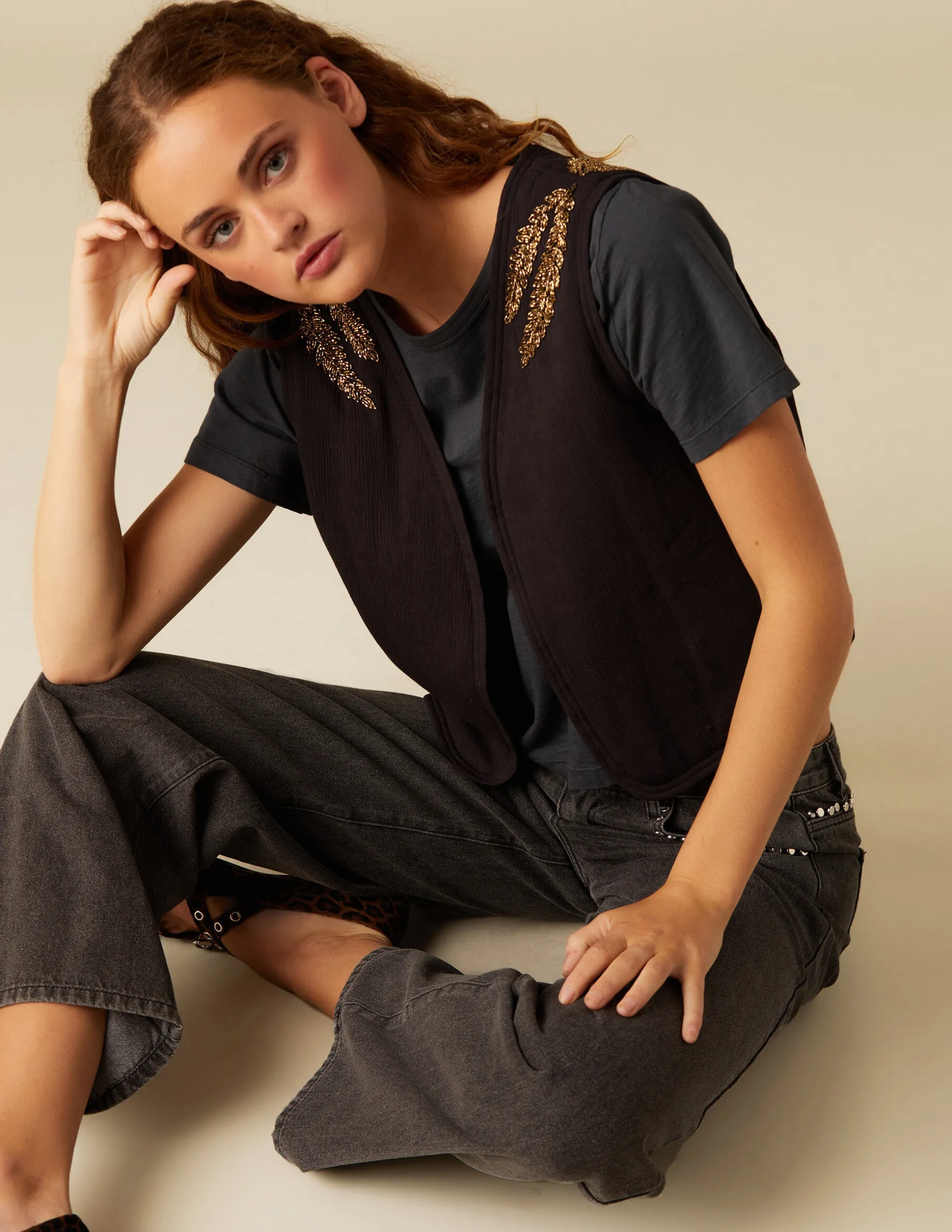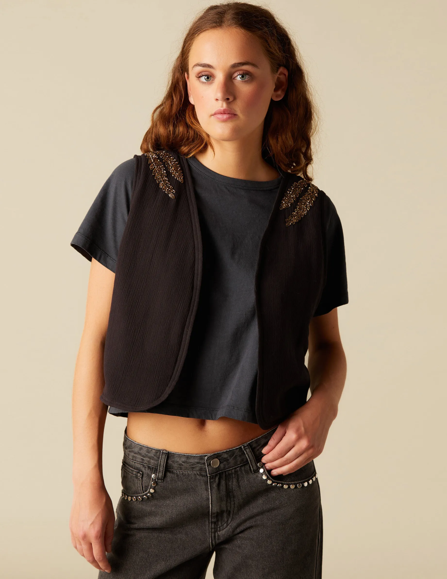 Chaleco de chica, rematado con beads en la zona de los hombros. Únicamente lavado en seco, por un profesional.