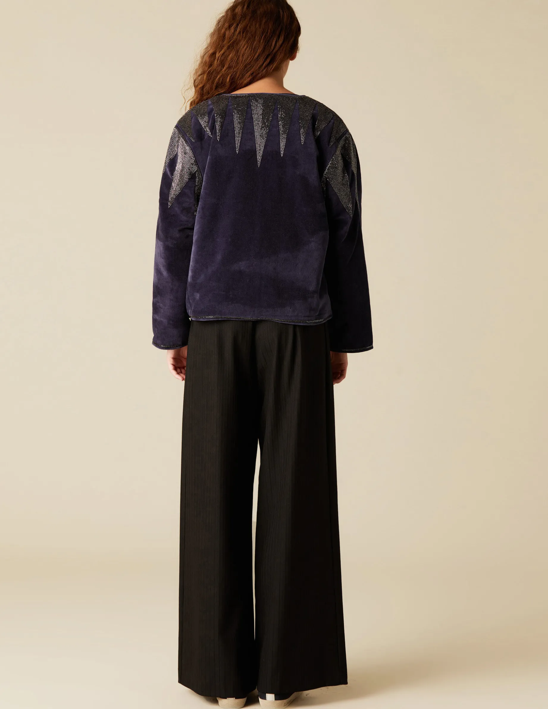 Pantalón de chica, en tejido negro arreglado. Patrón ancho.