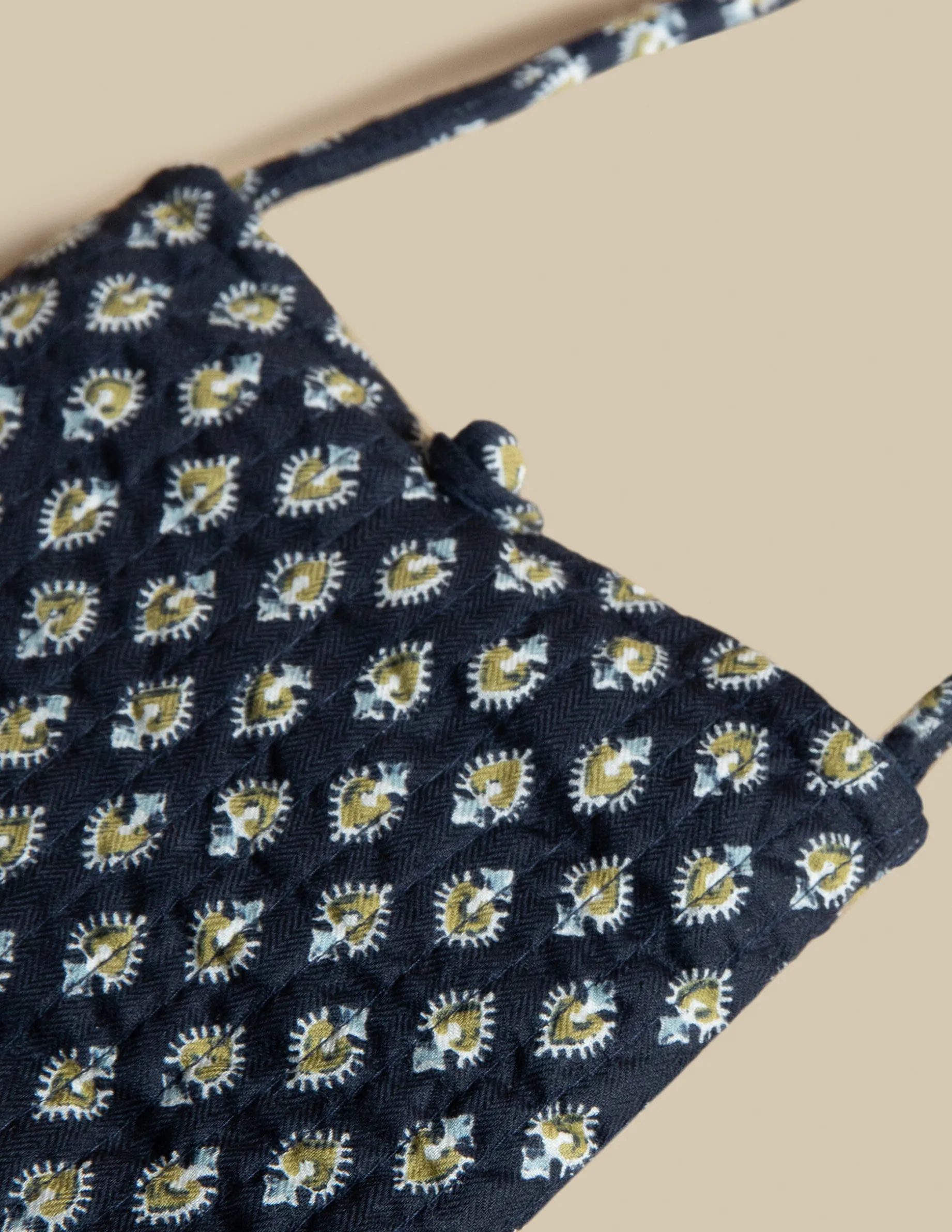 Bandolera en estampado de la colección, disponible en dos colores. Cierre con botón forrado. Medidas: 22cm de alto x 17,5cm de ancho. Alto del asa 65cm.
