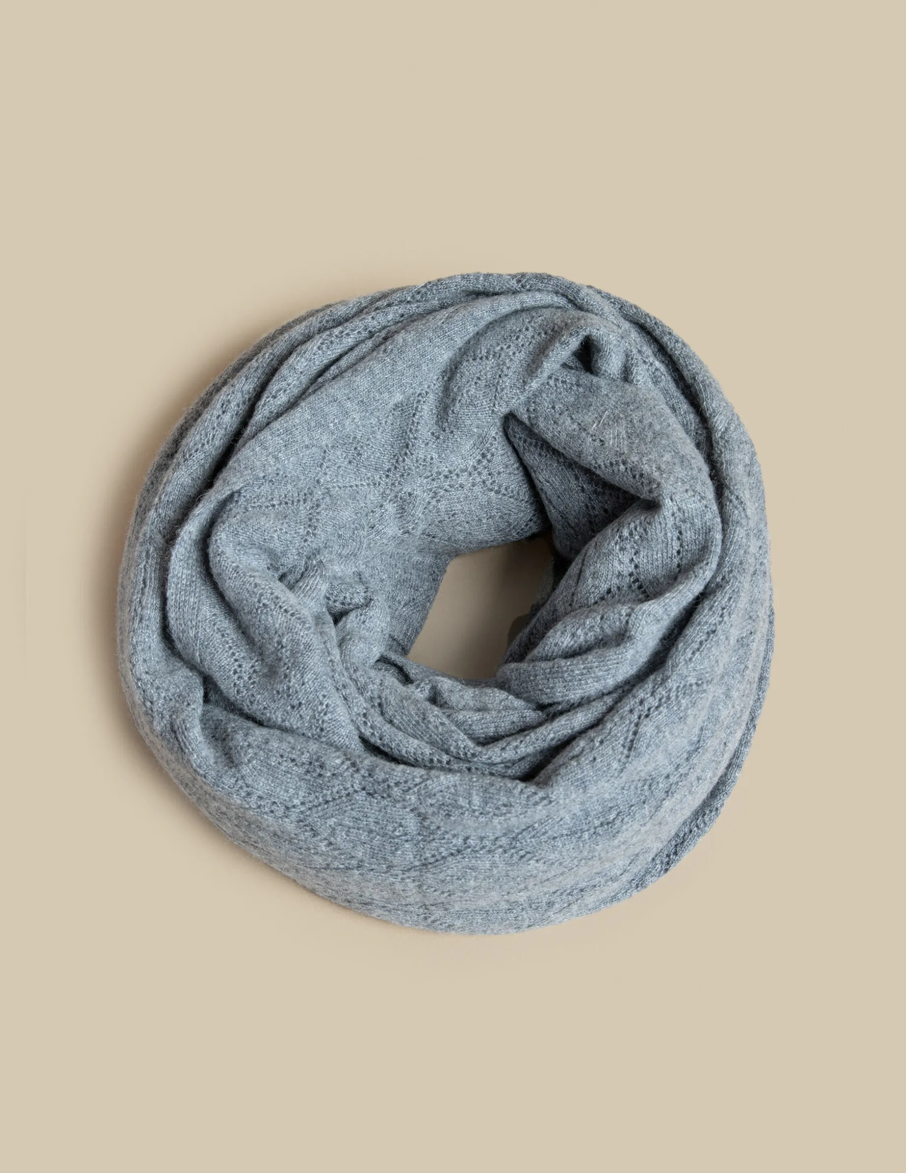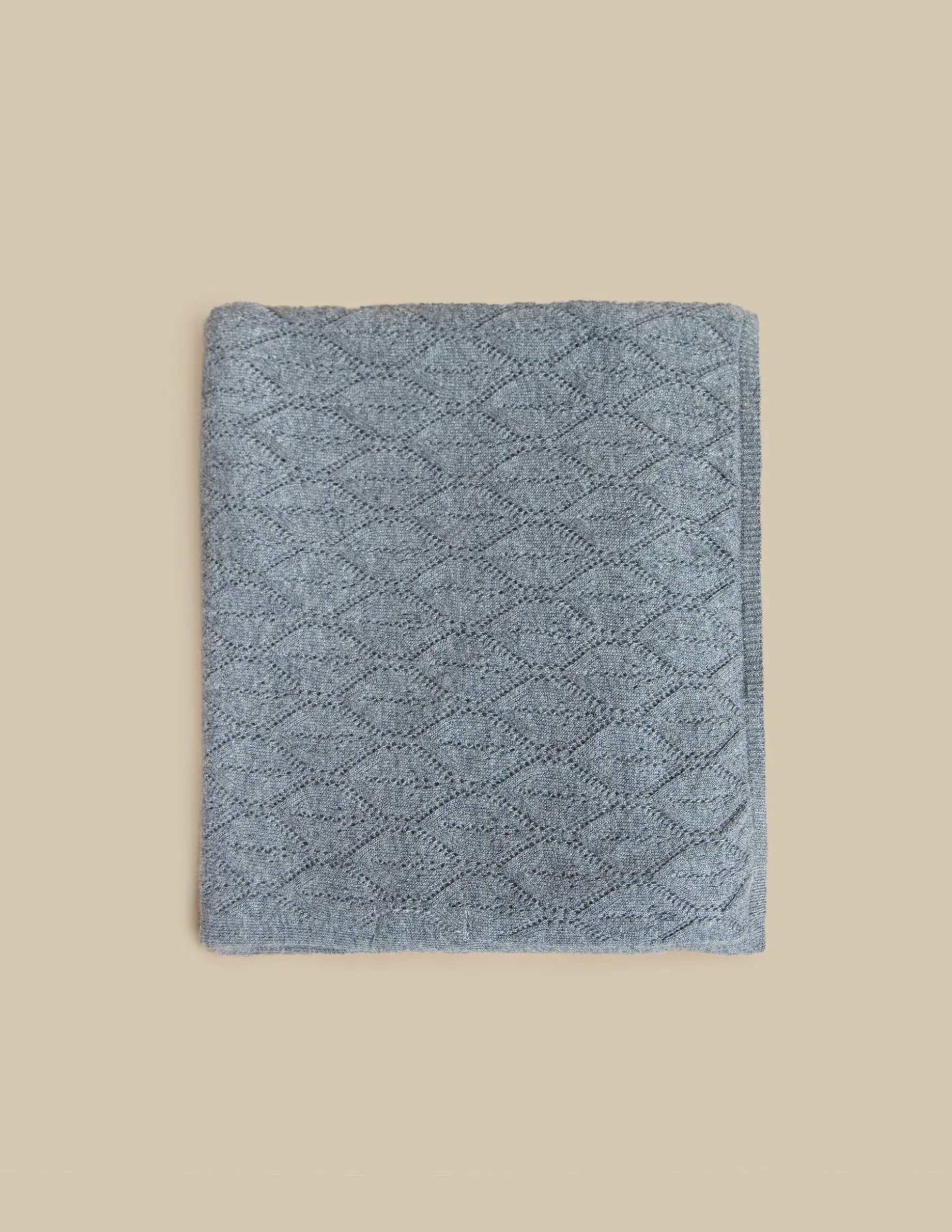 Bufanda en punto con rombos de color gris.
